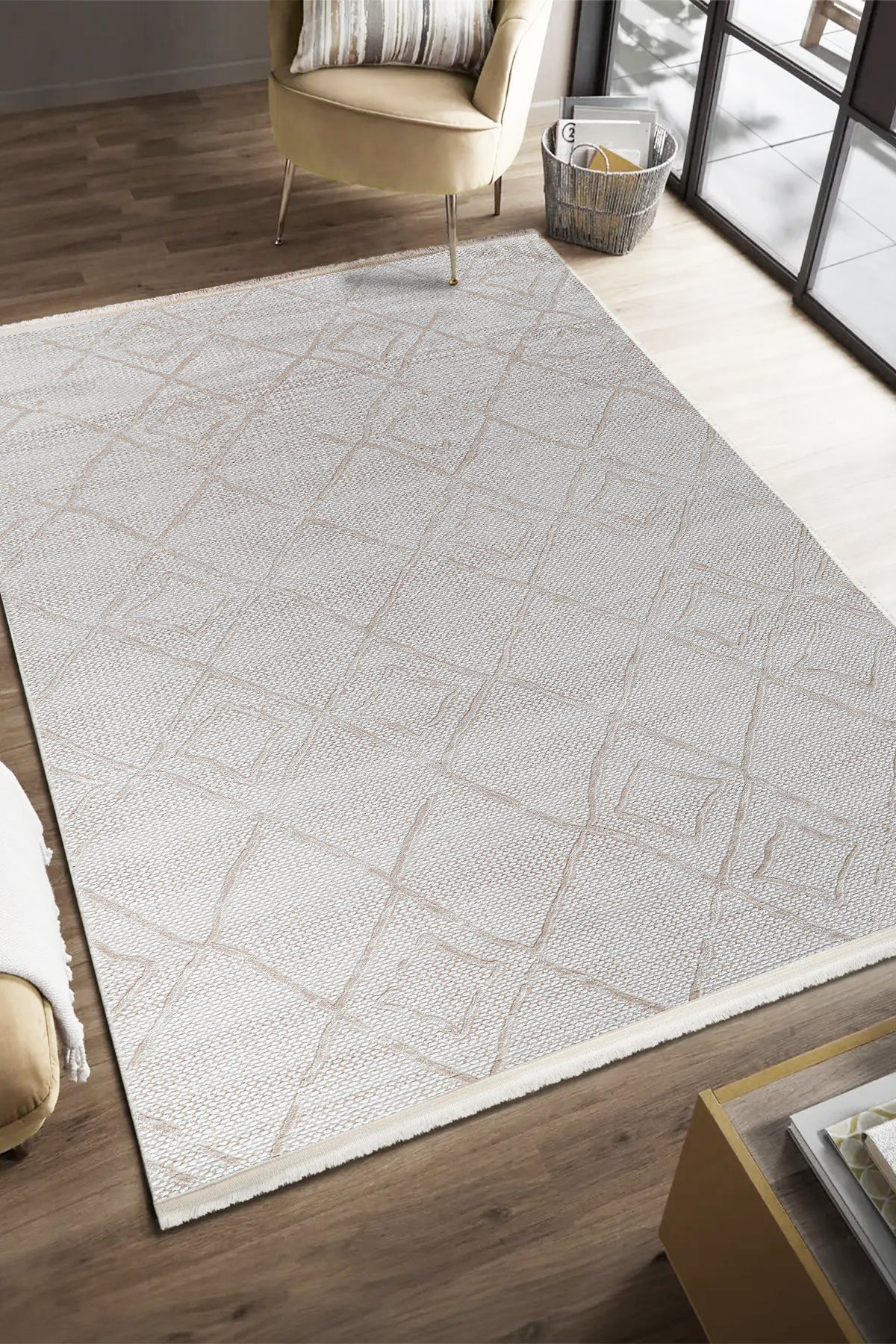 Akasya AK002 Krem Uzun Ömürlü Yumuşak Dokulu Salon Mutfak Koridor Oturma Odası Yolluk Halı