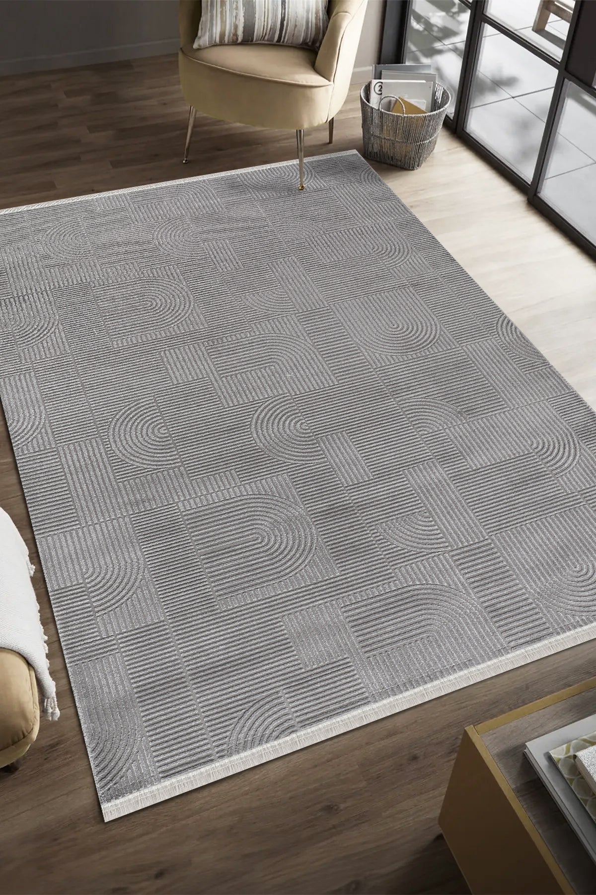 Akasya AK005 Gri Uzun Ömürlü Yumuşak Dokulu Salon Mutfak Koridor Oturma Odası Yolluk Halı
