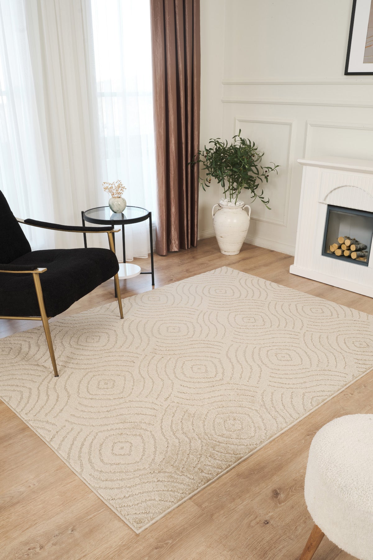 Bej Yumuşak Dokulu Uzun Ömürlü Lateks Kaymaz Taban Salon Oturma Odası Mutfak Koridor Halı Rivon RN06