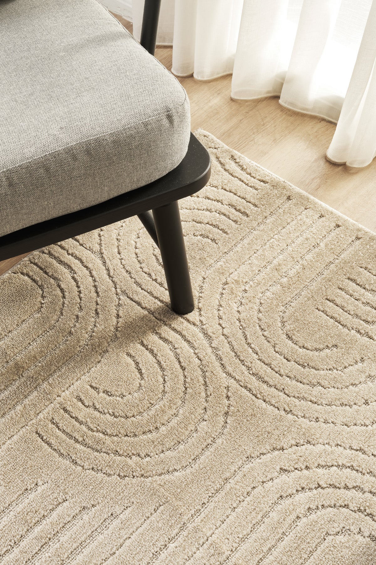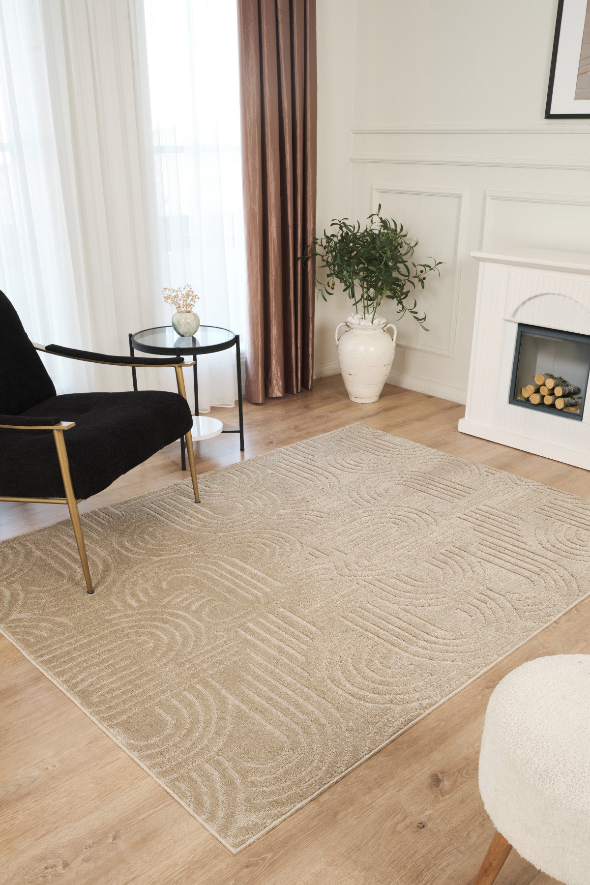 Bej Yumuşak Dokulu Uzun Ömürlü Lateks Kaymaz Taban Salon Oturma Odası Mutfak Koridor Halı Rivon RN08