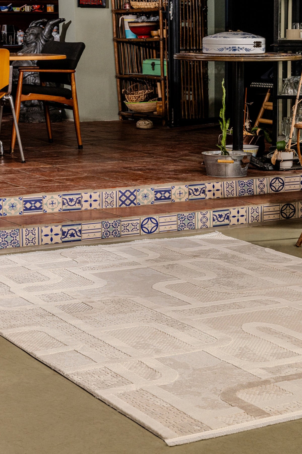Boyut BY002 Krem-Kahve Yumuşak Dokulu Salon Mutfak Koridor Oturma Odası Yolluk Halı Makine Halısı