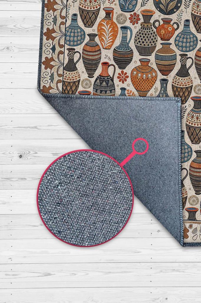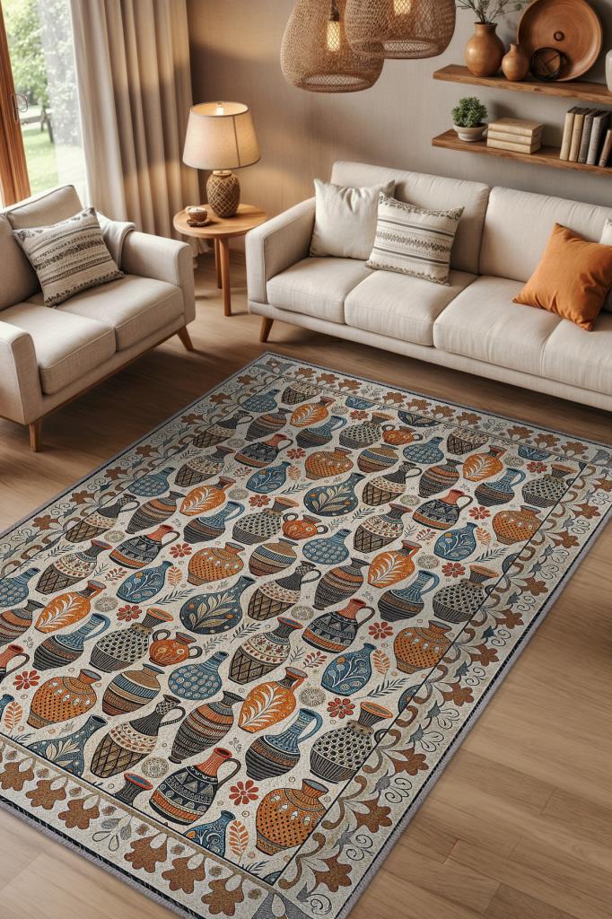 Çok Renkli Anadolu Kültürü Temalı Oturma Odası Halısı, Etnik Desenli Salon Halısı, Sanatsal Yıkanabilir Halı