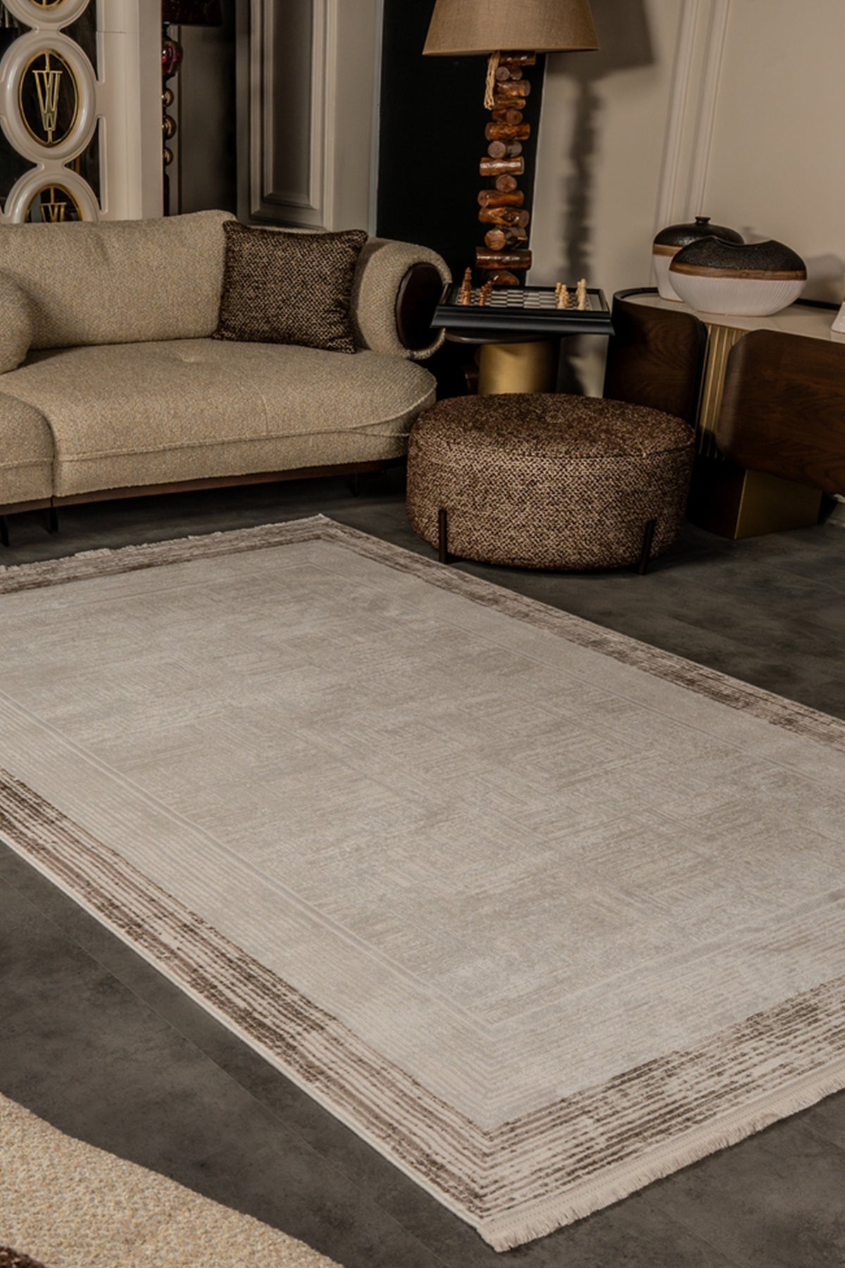 Cunda CN001 Bej-Kahve Uzun Ömürlü Yumuşak Dokulu Salon Mutfak Koridor Oturma Odası Yolluk Halı