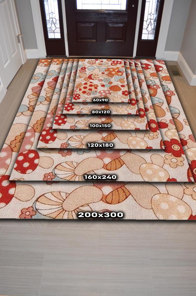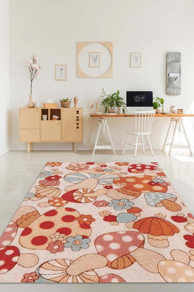 Homshtag Art Deco Çok Renkli Mantarlı Mutfak Halısı Pembe Mantar Baskılı Özel Tasarım Halı