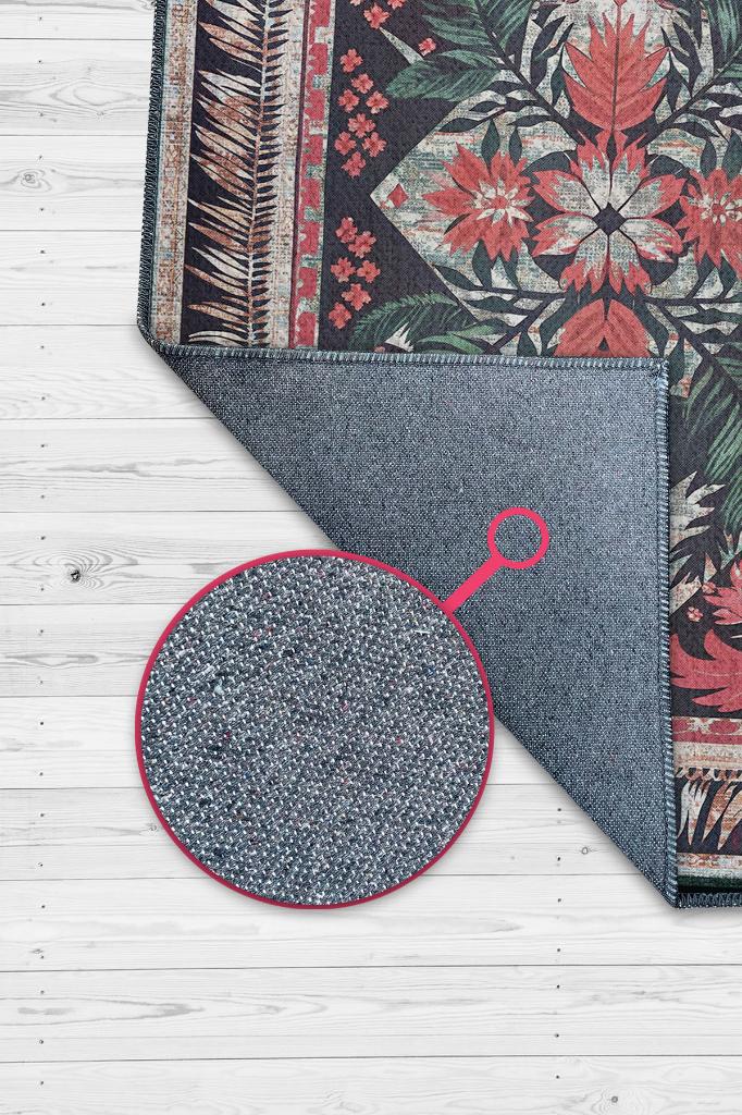 Homshtag Art Deco Soyut Bitki Temalı Halı Dijital Baskı Yeşil Kahve Renkli Rustik Çiçekli Halı