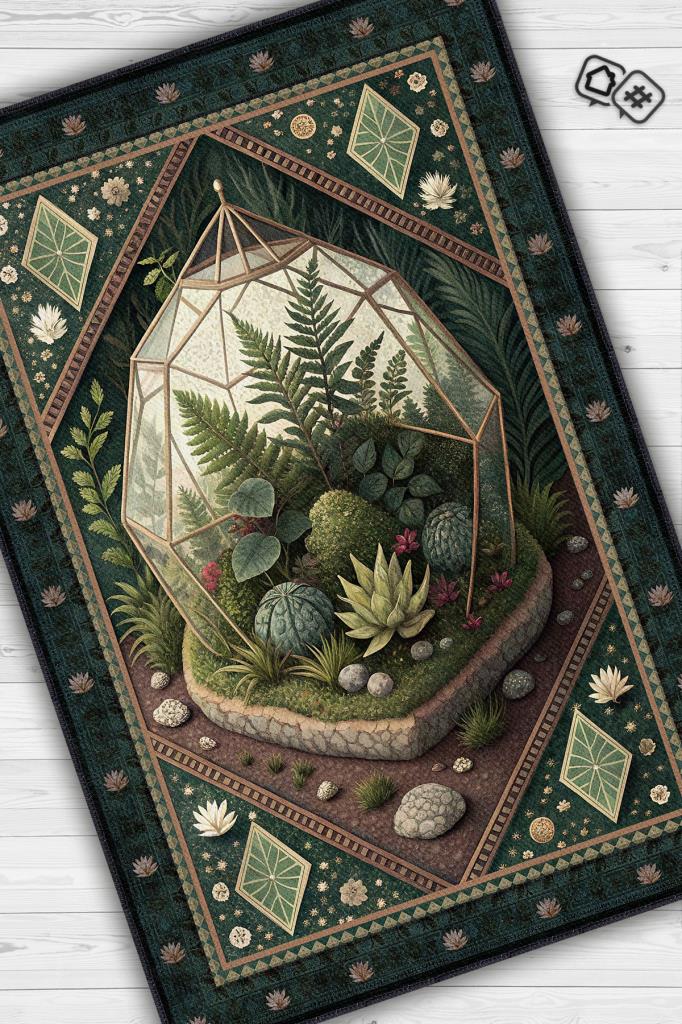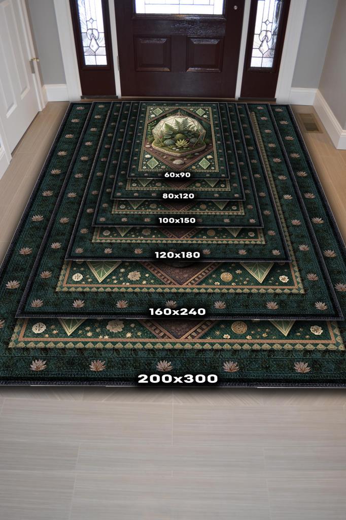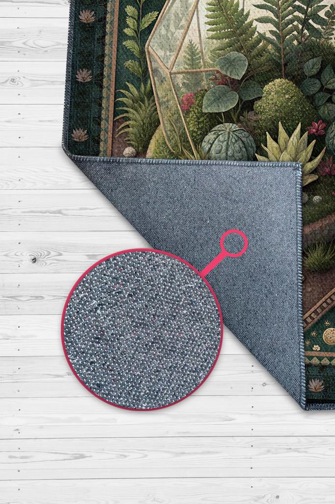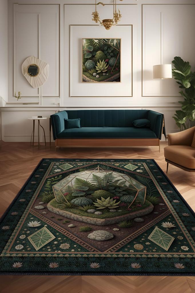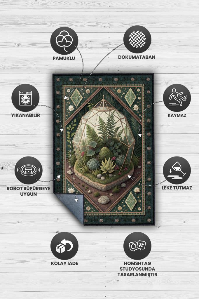 Homshtag Art Deco Teraryum Desenli Halı Bitki Temalı Yeşil Teraryum Desenli Dijital Baskı Halı