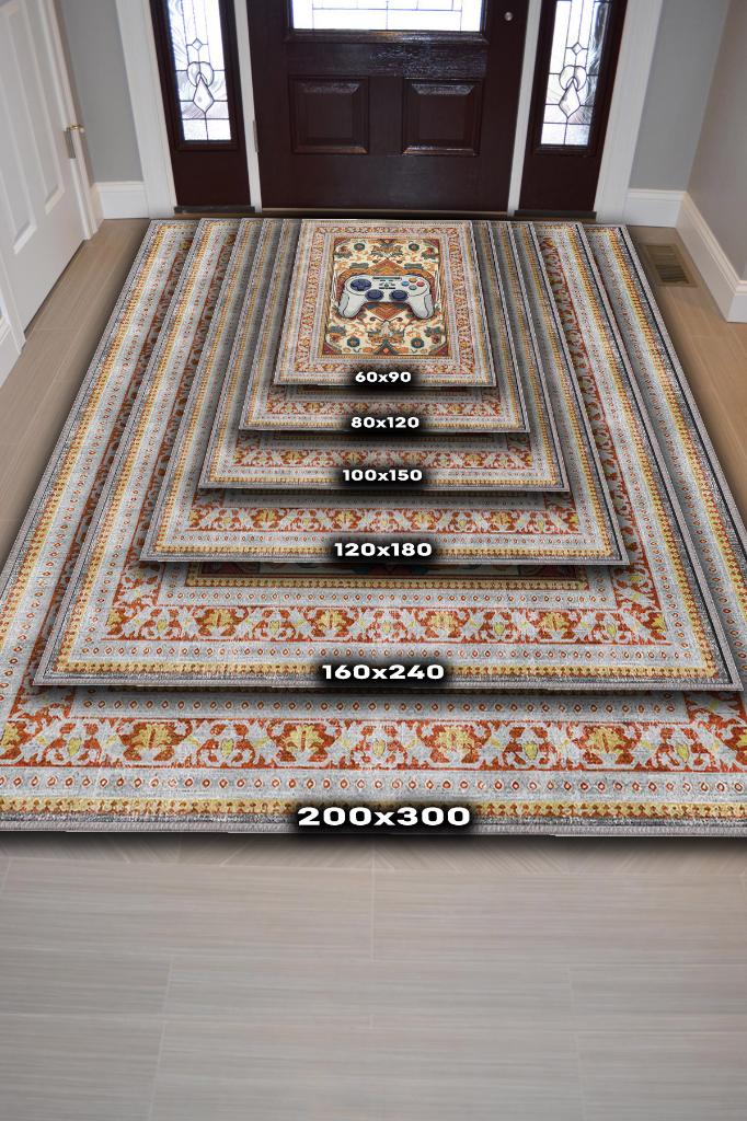 Homshtag Art Deko Gamer Halısı,Renkli Gamer Halısı,Gamepad Figürlü Joystick Geleneksel Oyuncu Halısı