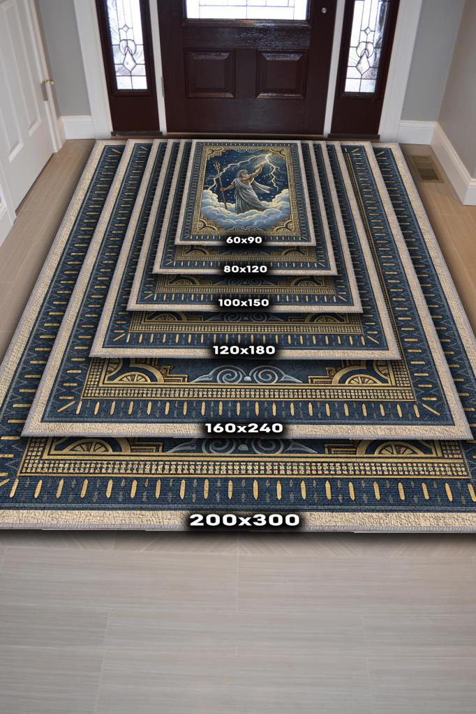 Homshtag Art Deko Renkli Zeus Temalı Mavi Renkli Halı Zeus Desenli Halı Modern Dijital Baskılı Halı
