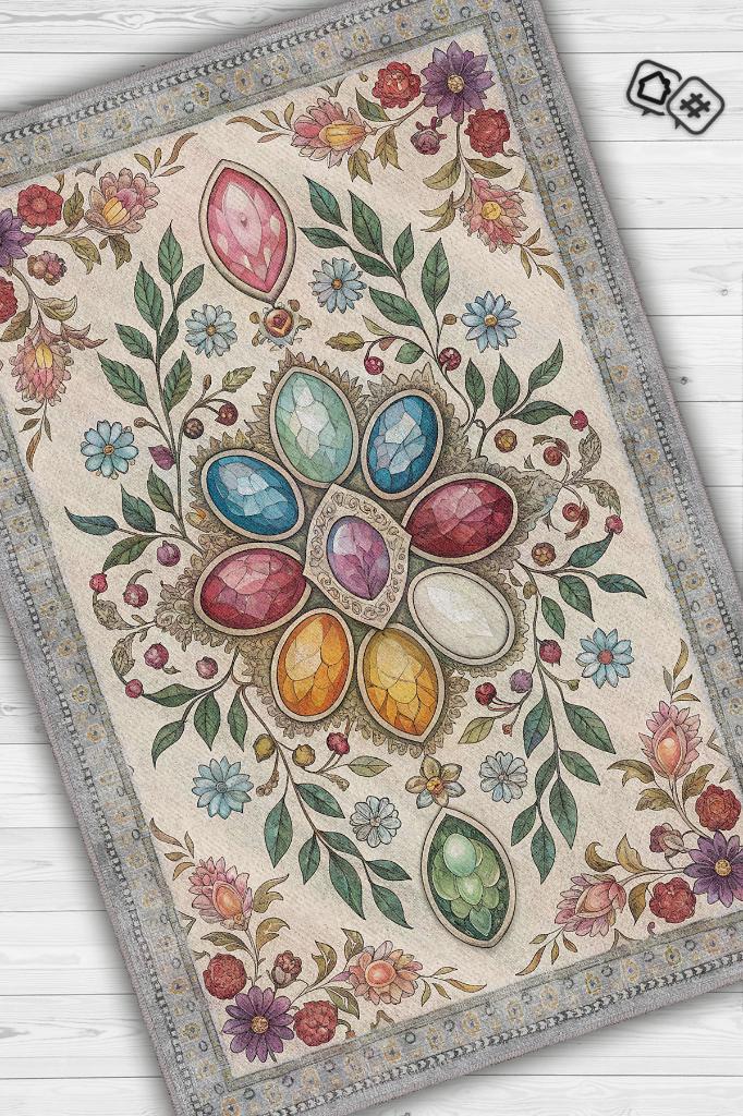 Homshtag Ay Taşı Halısı Çok Renkli Enerji Taşı Figürlü Halı Spiritüel Temalı Modern Halı