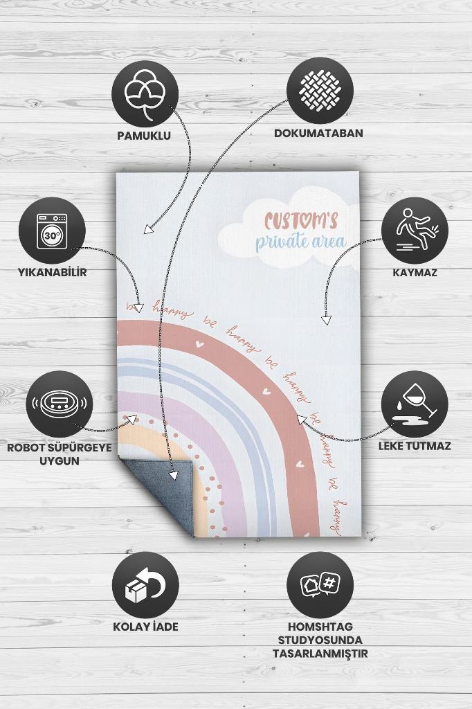 Homshtag Bebeğimin Alanı Kişiye Özel Kişiselleştirilebilir Dokuma Tabanlı Yıkanabilir Dekoratif Ev Halısı