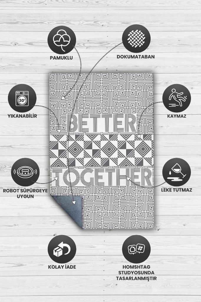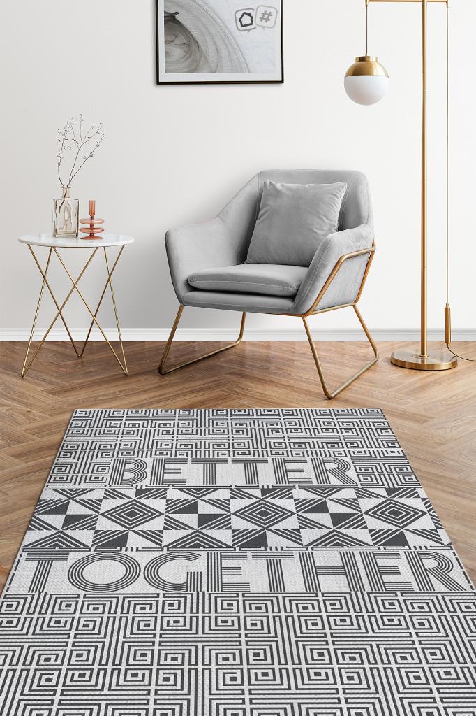Homshtag Birlikte Daha İyi Geometrik Desenli Salon Halısı Açık Renkli Halı Beyaz Gri Renkli Halı