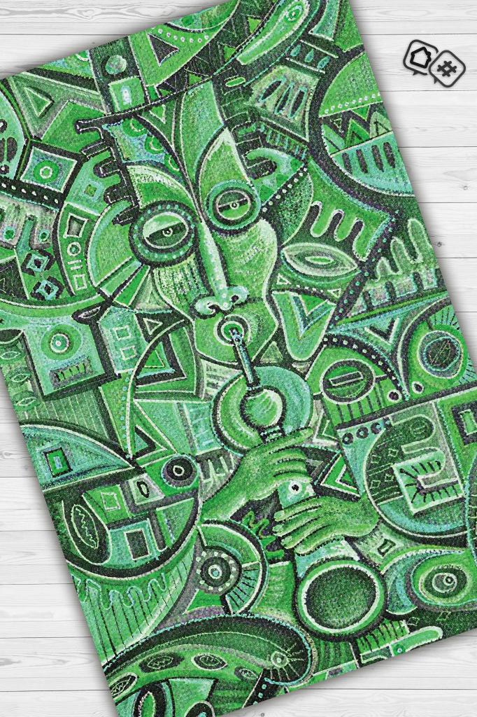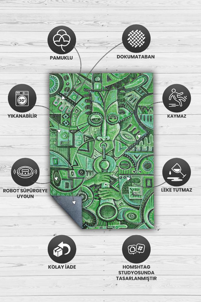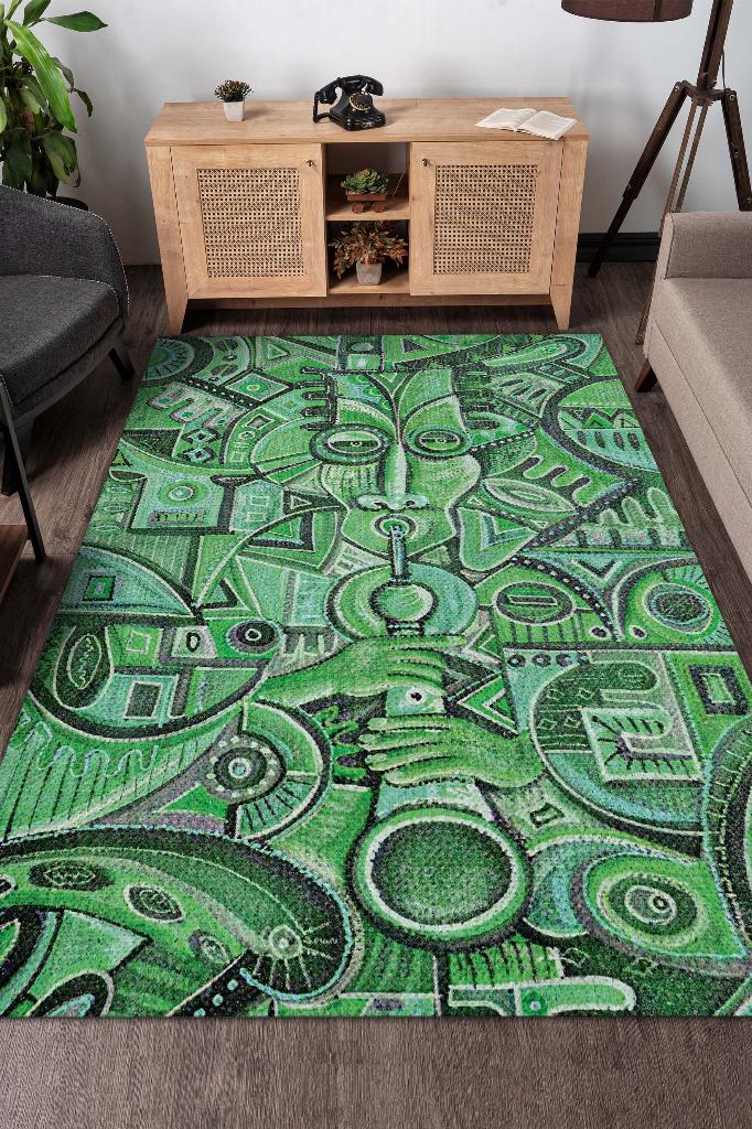 Homshtag Çalgıcı Minimal Salon Halısı Etnik Desenli Halı Yeşil Renkli Geometrik Oturma Odası Halısı