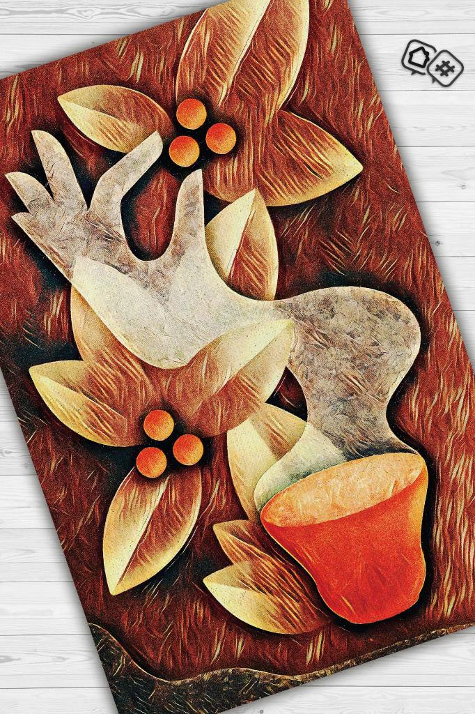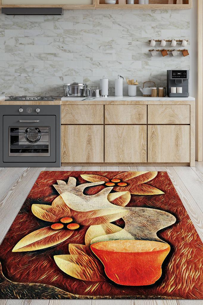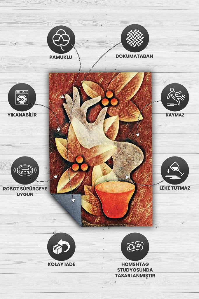 Homshtag Çekirdekten Fincana Sıcak Renkli Halı Desenli Mutfak Halısı Kahve Figürlü Geometrik Halı