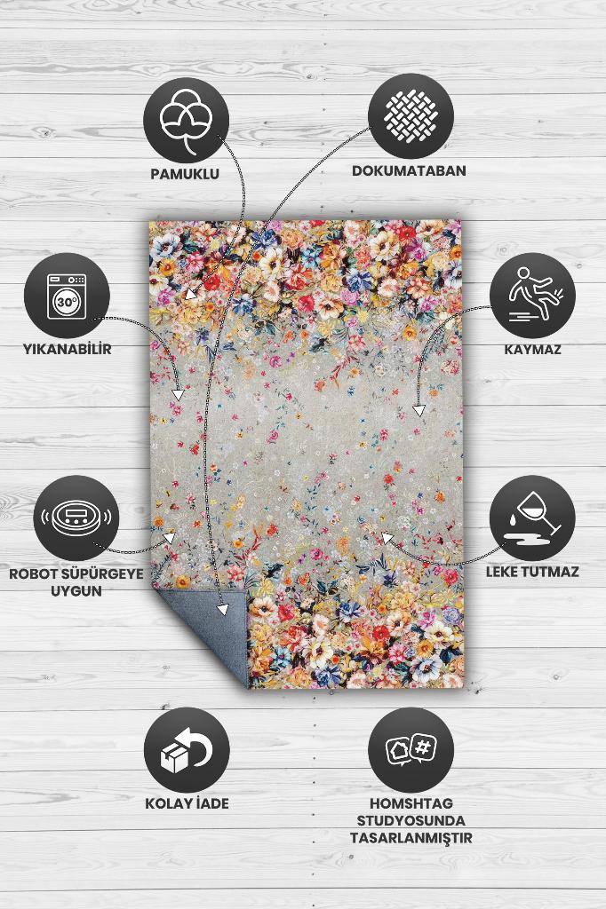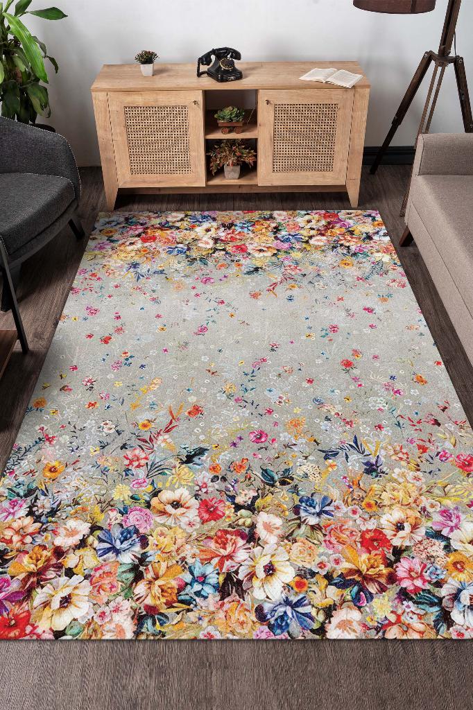 Homshtag Çiçek Yolu Bej Renk Halı Çiçekli Salon Halısı Modern Oturma Odası Halısı Şık Çiçekli Halı