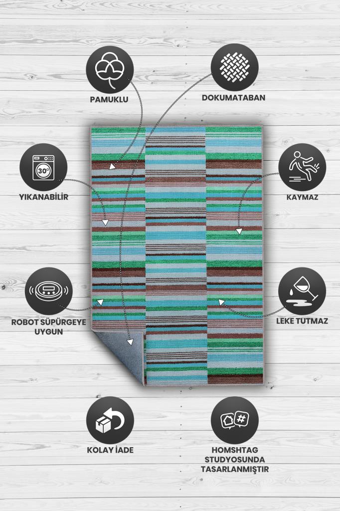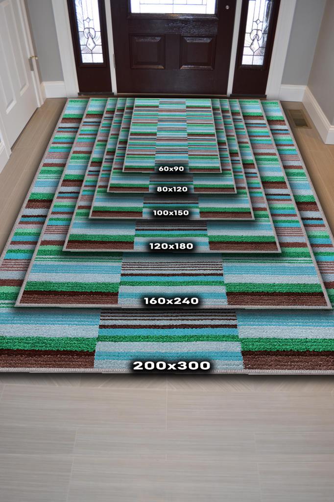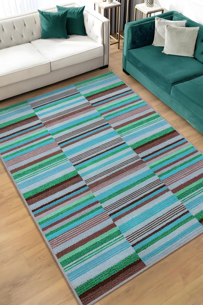 Homshtag Çizili Mavi Renkli Halı Mutfak Halısı Çizgili Oturma Odası Halısı Retro Tarzı Salon Halısı