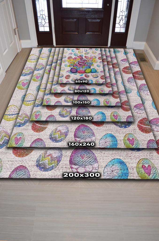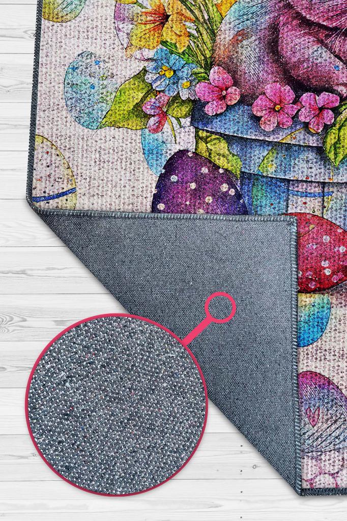 Homshtag Çocuk Odası Halısı Modern Çok Renkli Çocuk Halısı Yumurta Tavşan Figürlü Çocuk Halısı