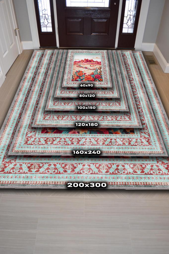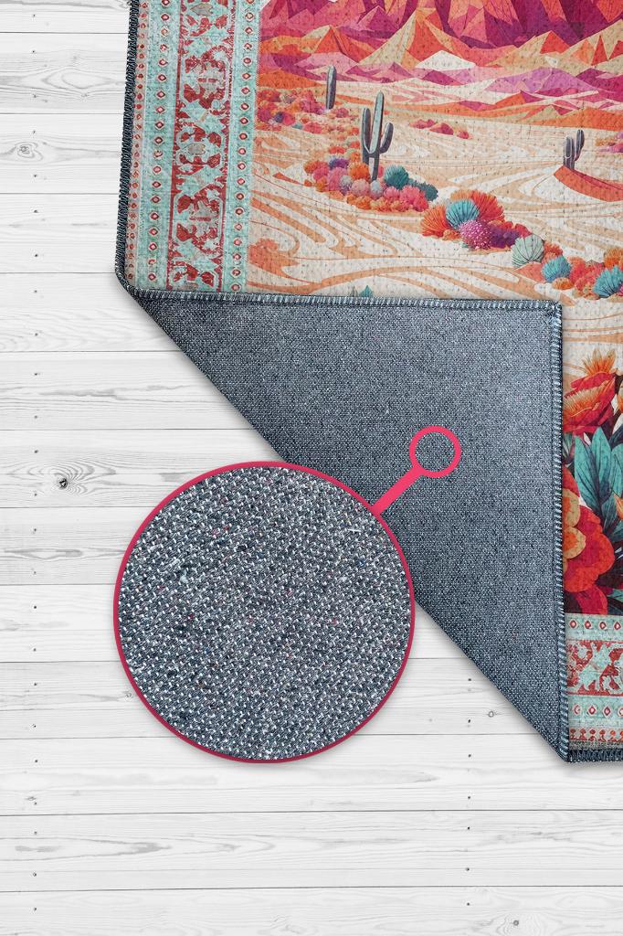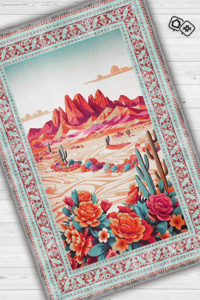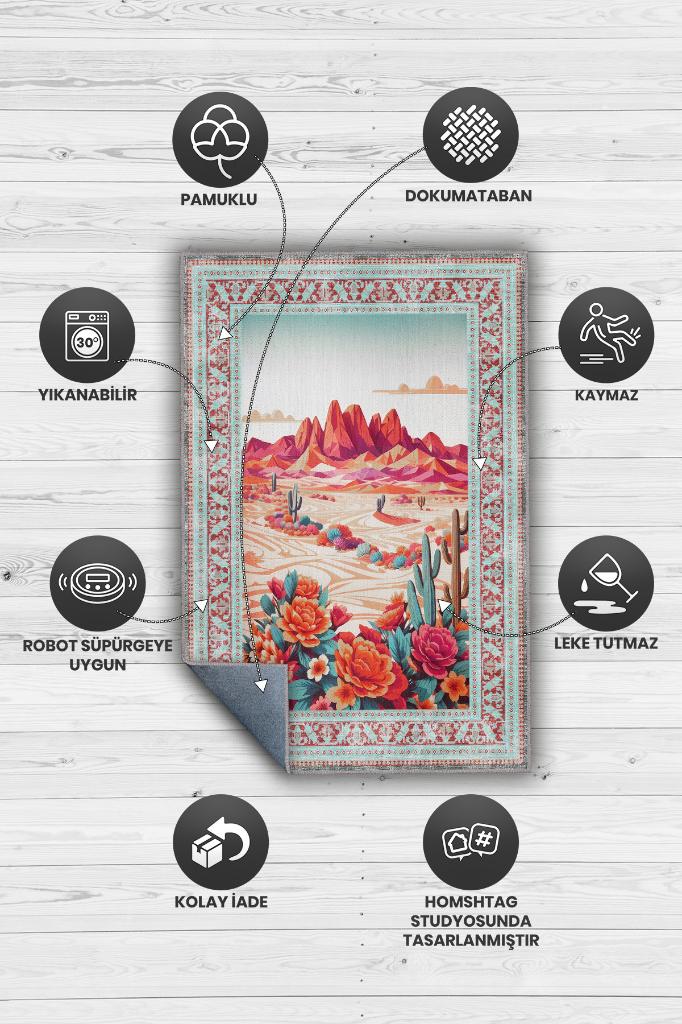 Homshtag Çöl Manzarası Temalı Salon Halısı Çiçek Desenli Çok Renkli Etnik Oturma Odası Halısı