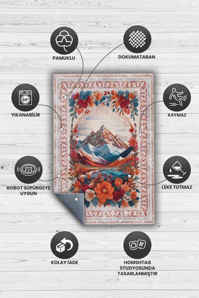 Homshtag Dağ Temalı Salon Halısı Geometrik Desenli Çok Renkli Halı Etnik Desenli Oturma Odası Halısı
