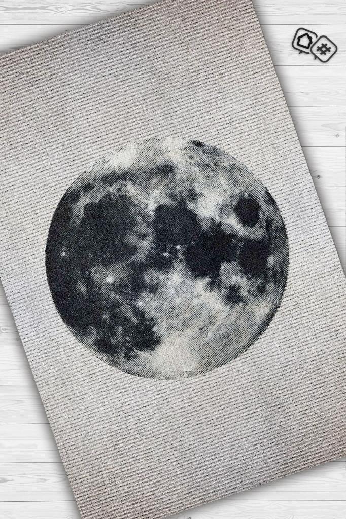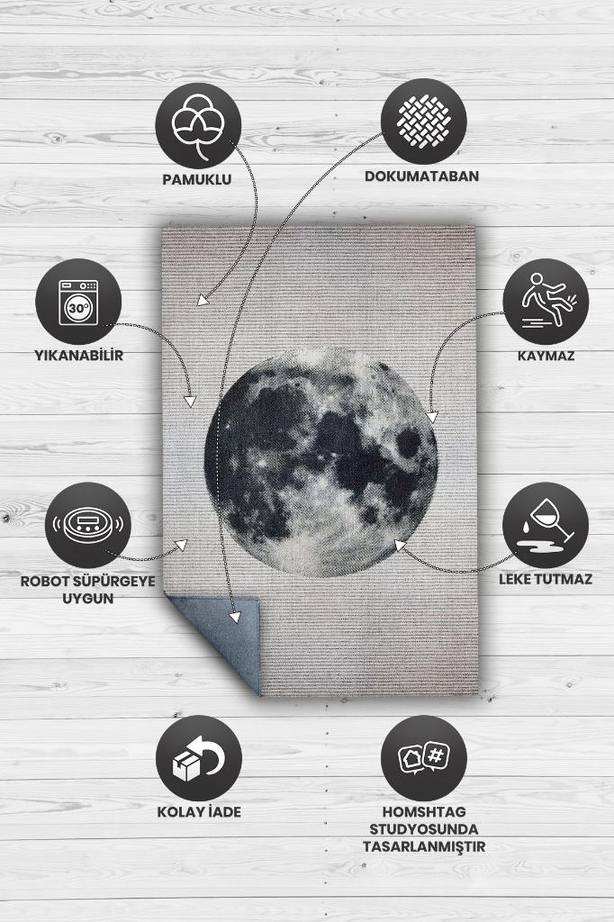 Homshtag Dolunay Gri Renkli Halı Dokulu Salon Halısı Minimal Genç Odası Halısı Gökyüzü Temalı Halı