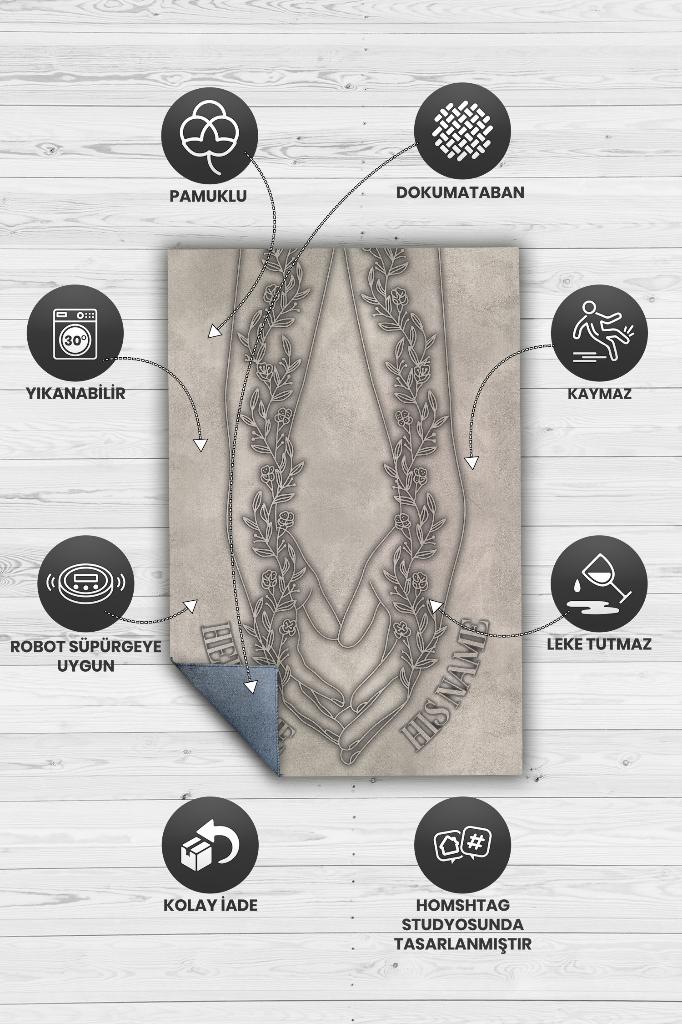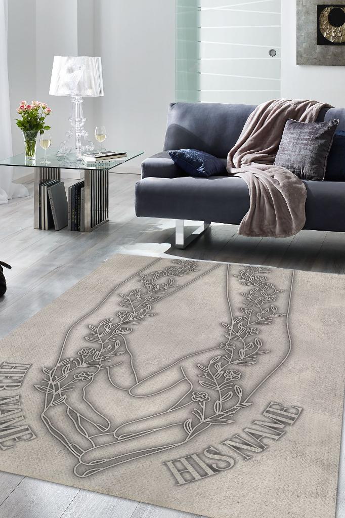 Homshtag Elele Kişiye Özel Kişiselleştirilebilir Sevgi Halısı Bej Renk Hediyelik Sevgiliye Özel Halı