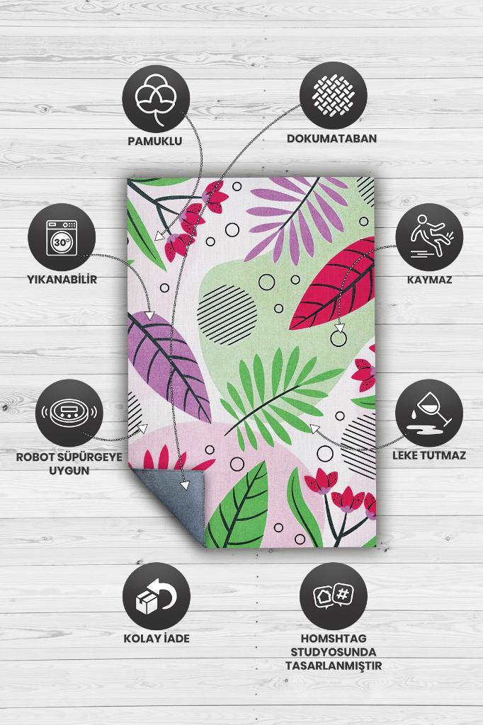 Homshtag Etnik Desenli Yaz Halısı,Çiçekli Halı, Renkli Balkon,Yıkanabilir Dış Mekan Halısı
