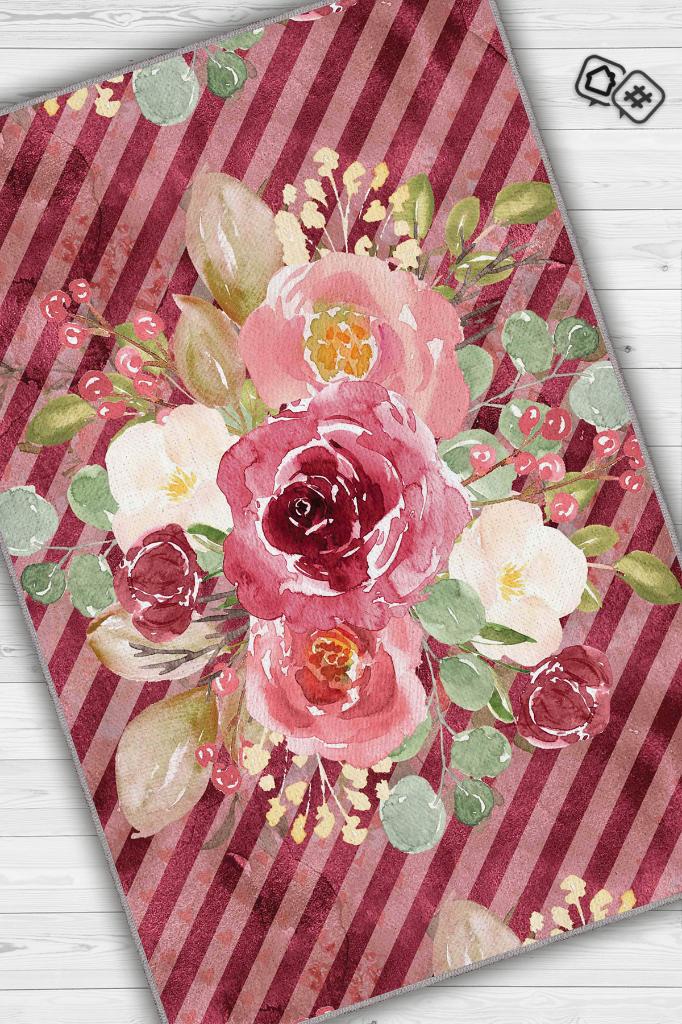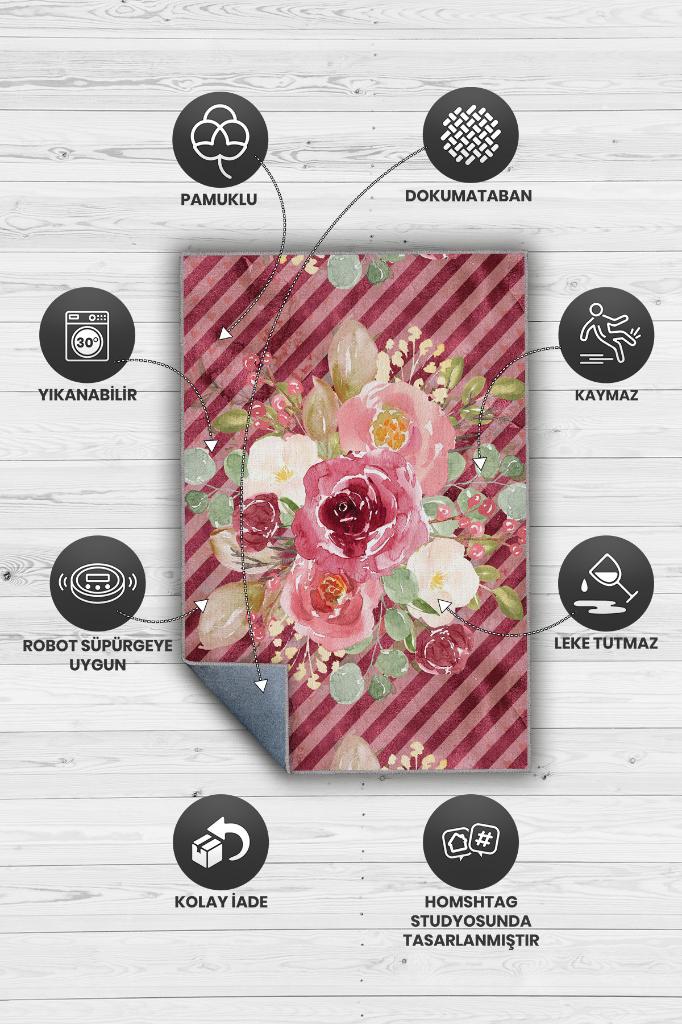 Homshtag Evet Çiçek Desenli Salon Halısı Çok Renkli Oturma Odası Halısı Çizgili Modern Halı