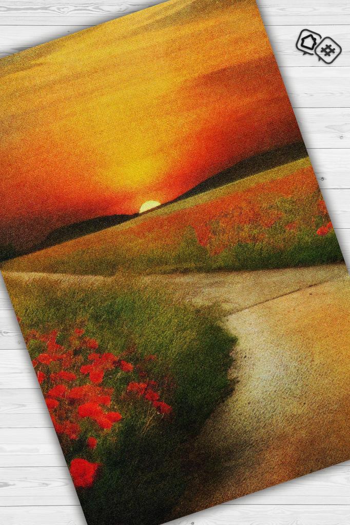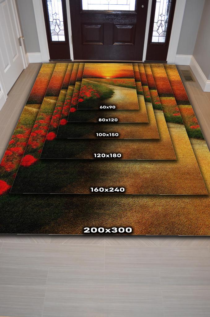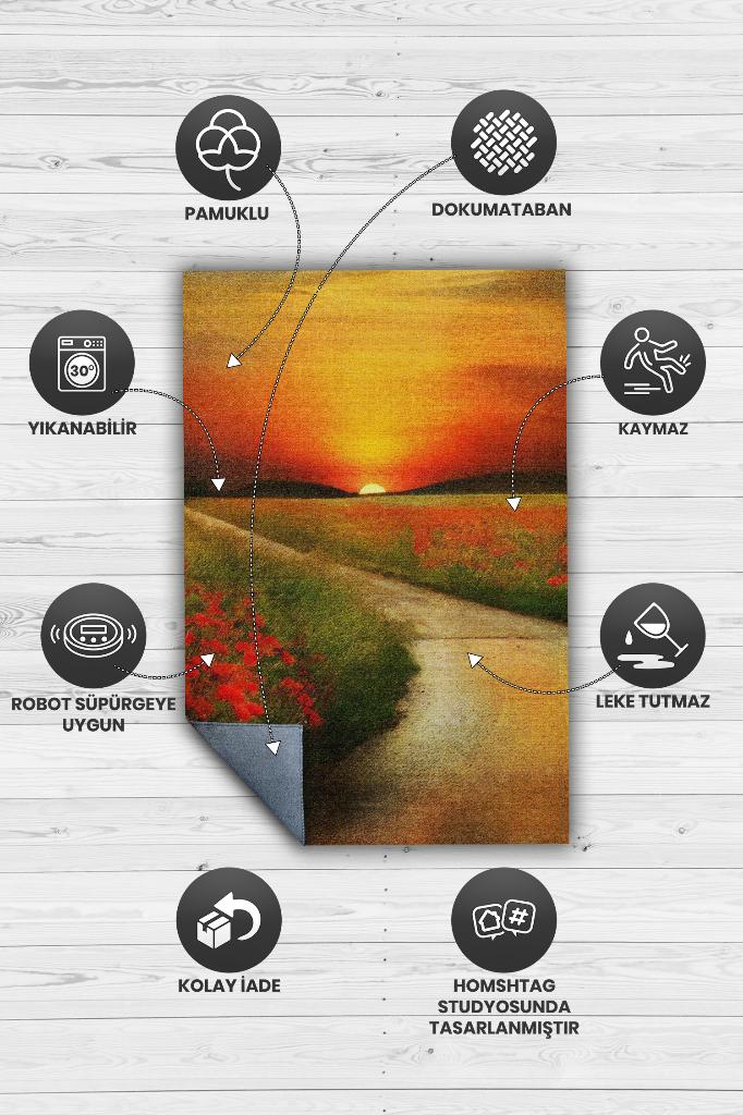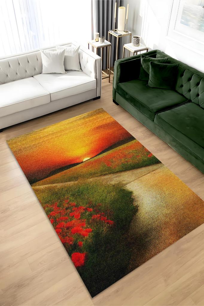 Homshtag Gelincikler Çok Renkli Halı Manzara Temalı Figürlü Salon Halısı Dijital Baskı Tasarım Halı