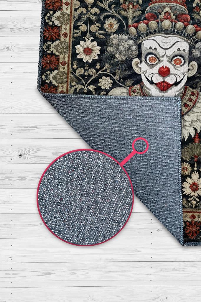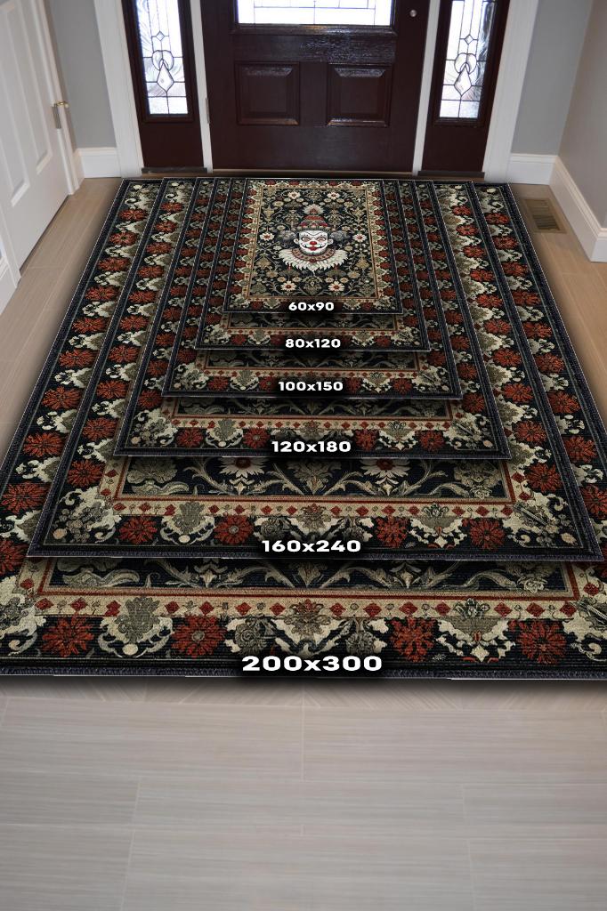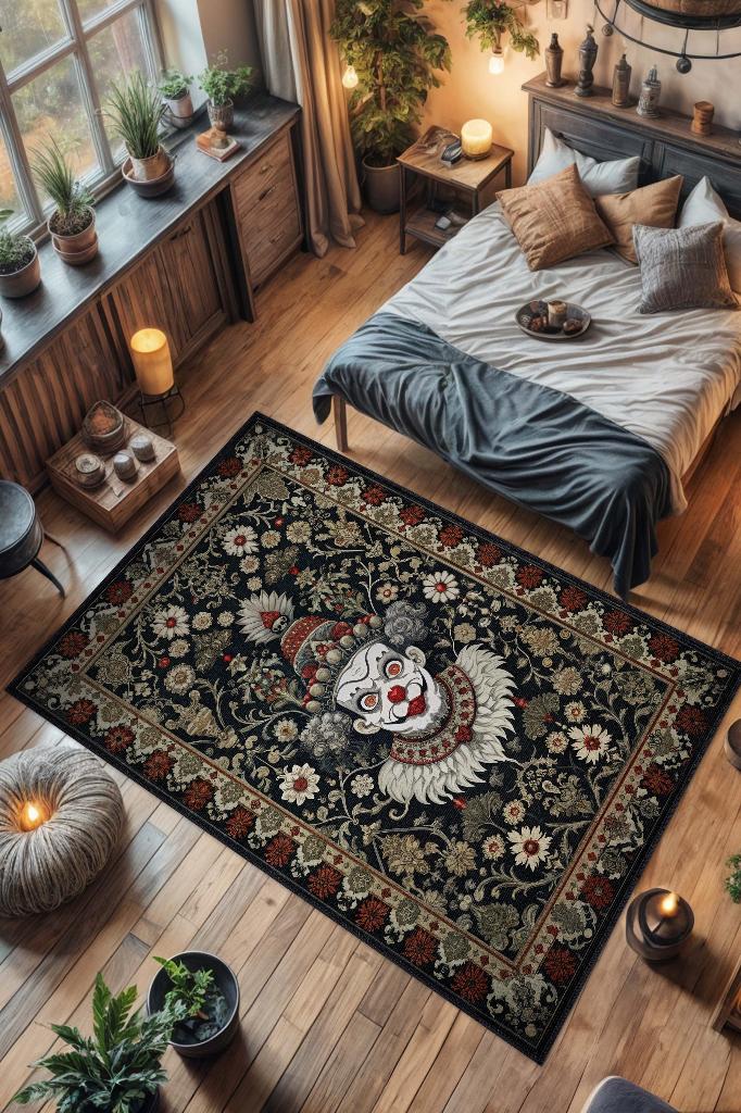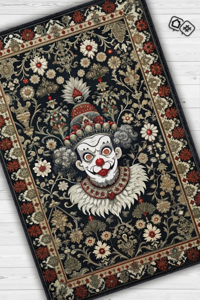 Homshtag Gotik Palyaço Temalı Halı Siyah Çiçekli Oturma Odası Halısı Etnik Hediyelik Palyaço Halısı