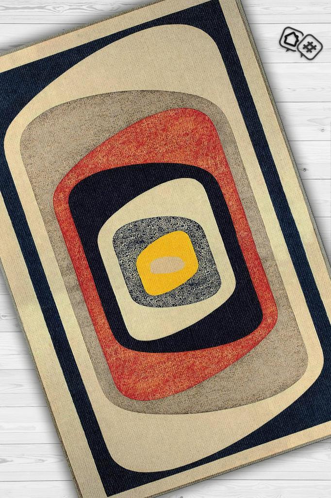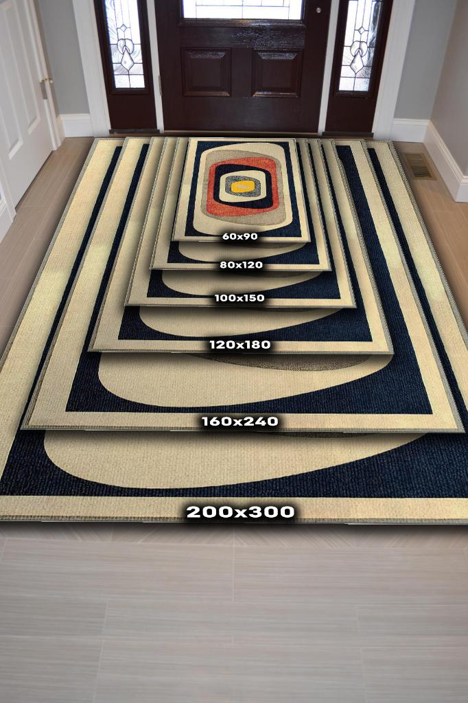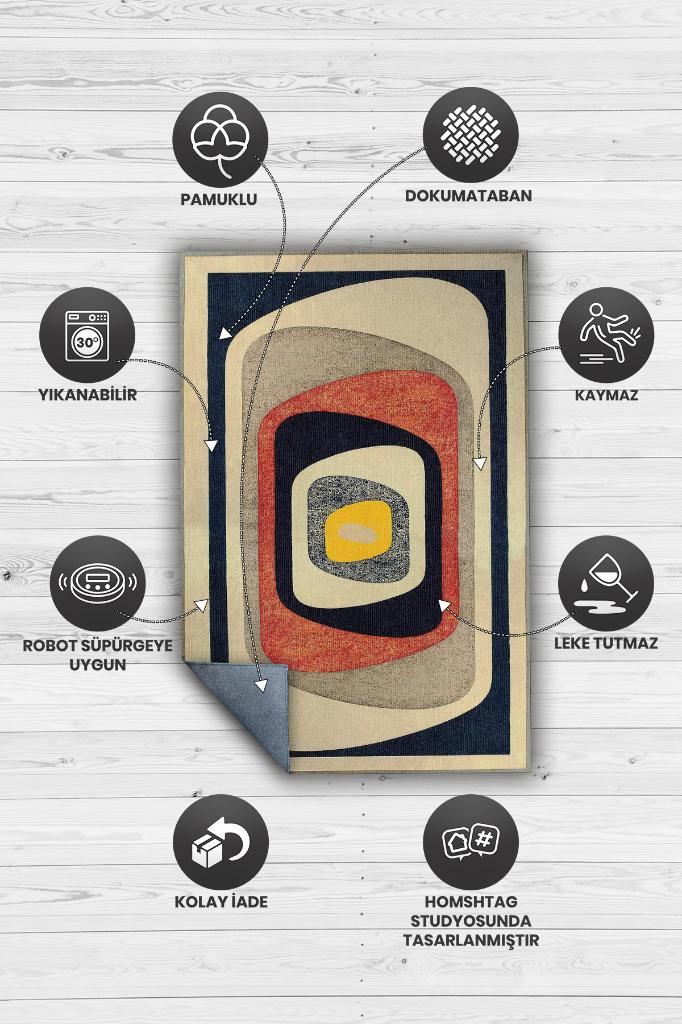 Homshtag Göz, Soft Renkli Halı, Modern Tasarım Halı, Krem, Lacivert, Bej Dokuma Tabanlı Salon Halısı