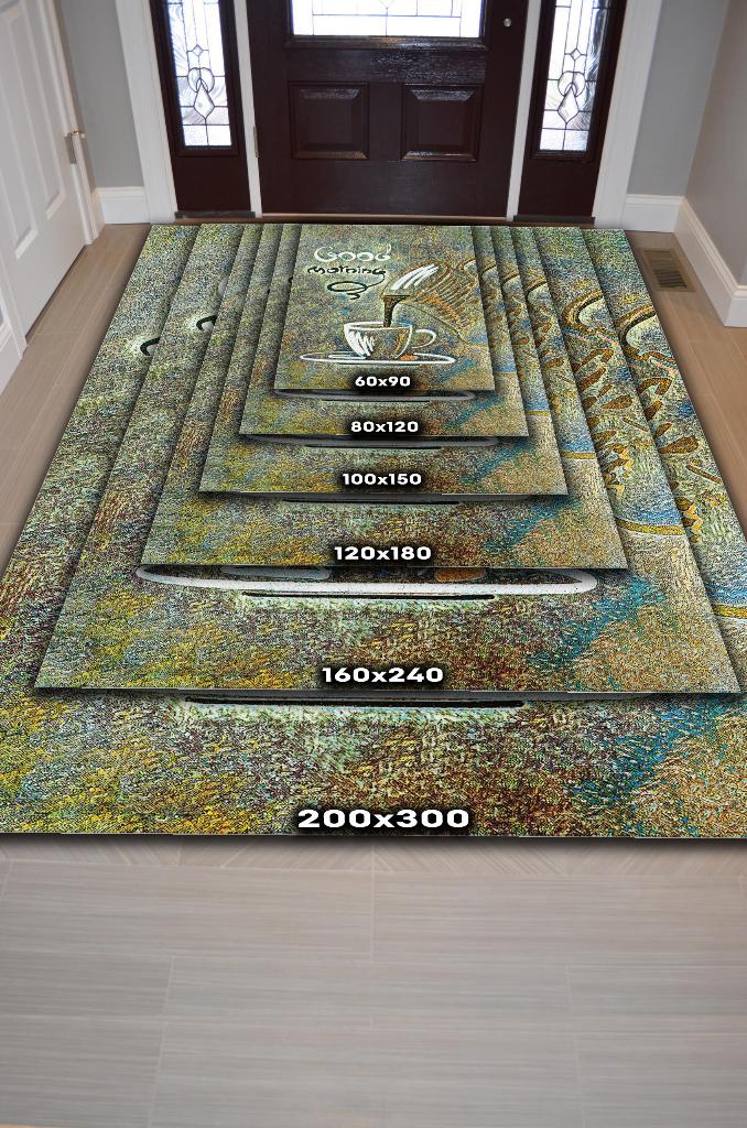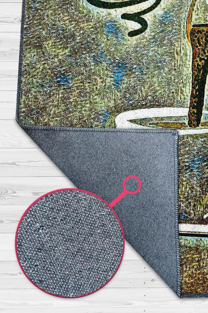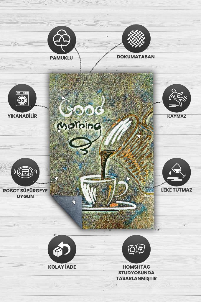 Homshtag Günaydın Yeşil Renki Halı Kahve Desenli Mutfak Halısı Sanatsal Salon Halısı Kahveli Halı