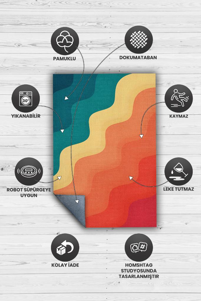 Homshtag Güneş ve Deniz, Yaz Temalı İnce Mutfak Halısı,Renkli Yıkanabilir Mutfak Halısı