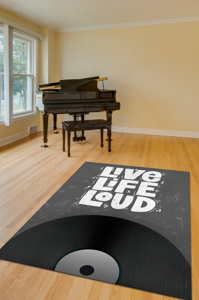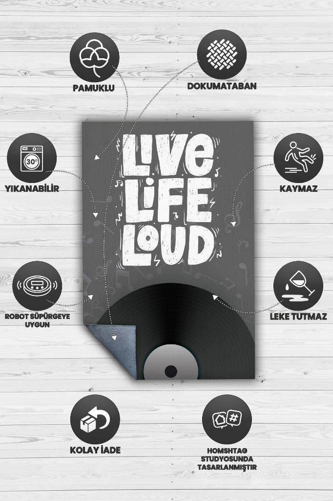 Homshtag Hayatı Sesli Yaşa Gri Siyah Koyu Renkli Halı Art Müzik Halı Müzisyene Hediye Halı