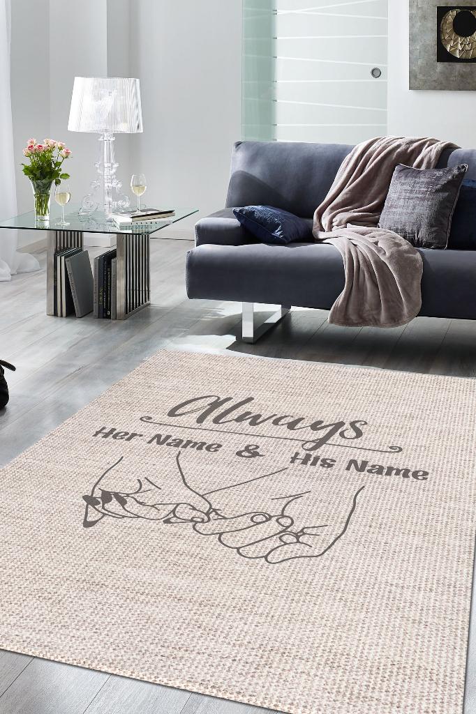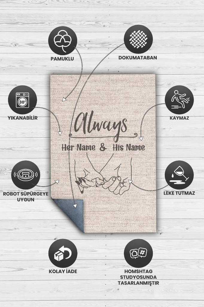 Homshtag Her Zaman Kişiye Özel Kişiselleştirilebilir Halı Bej Renk Hediyelik Sevgiliye Özel Halı