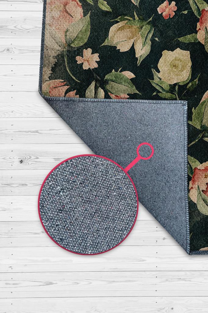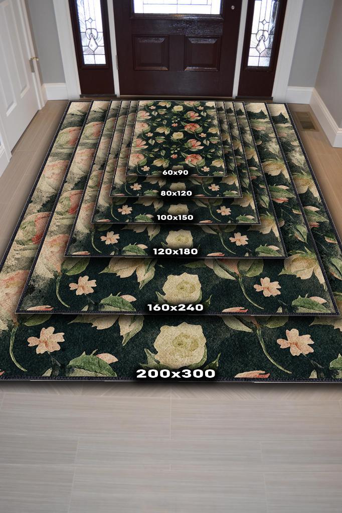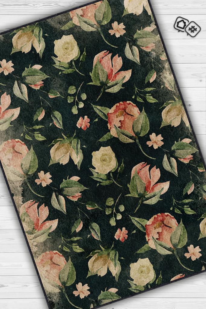 Homshtag Her Zaman Sen Oldun Çiçek Desenli Siyah Renkli Halı Art Çiçek Temalı Halı Modern Halı