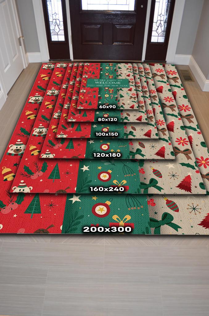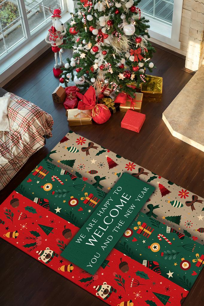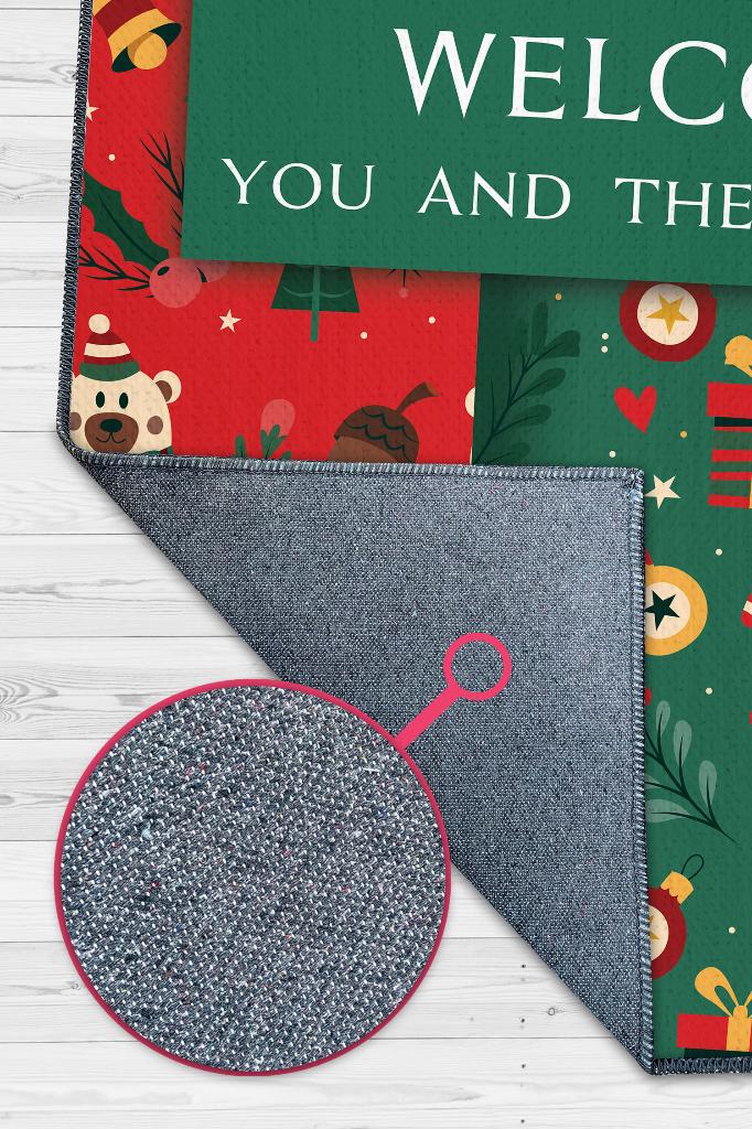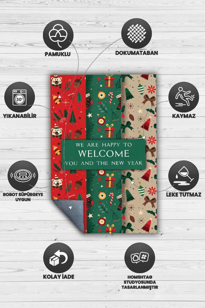 Homshtag Hoş Geldiniz Yeşil Renkli Yeni Yıl Parti Halısı Çok Renkli Yılbaşı Temalı Hediyelik Halı