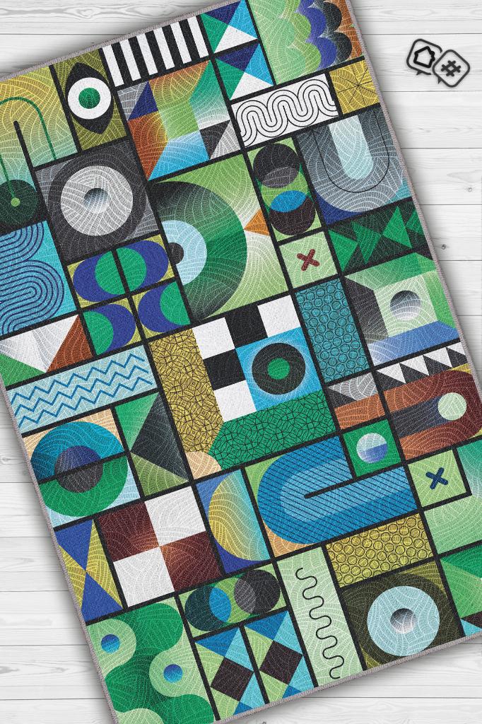 Homshtag İyi Hal Geometrik Desenli Salon Halısı Yeşil Oturma Odası Halısı Dekoratif Halı Modern Halı