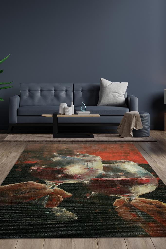 Homshtag Kadeh Sanatı Koyu Renkli Halı Modern Parti Temalı Halı Dokuma Tabanlı Modern Hediyelik Halı