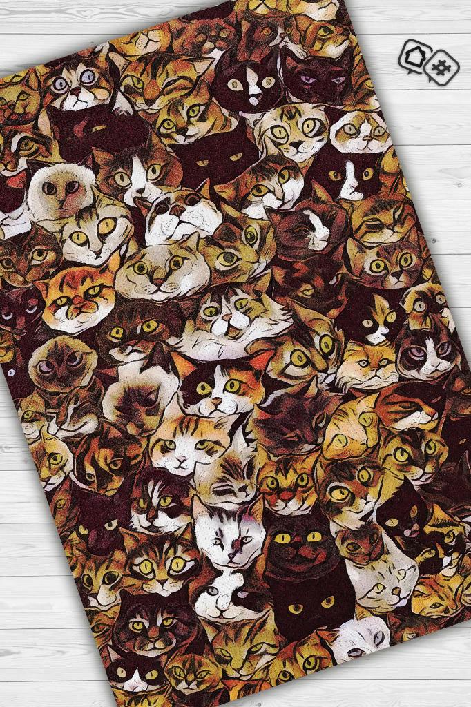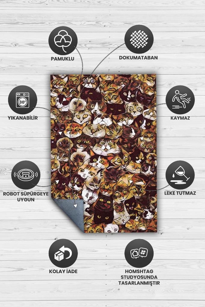 Homshtag Kedi Kafası Kahverengi Halı Minimal Gen Odası Halısı Renkli Salon Halısı Kedili Halı