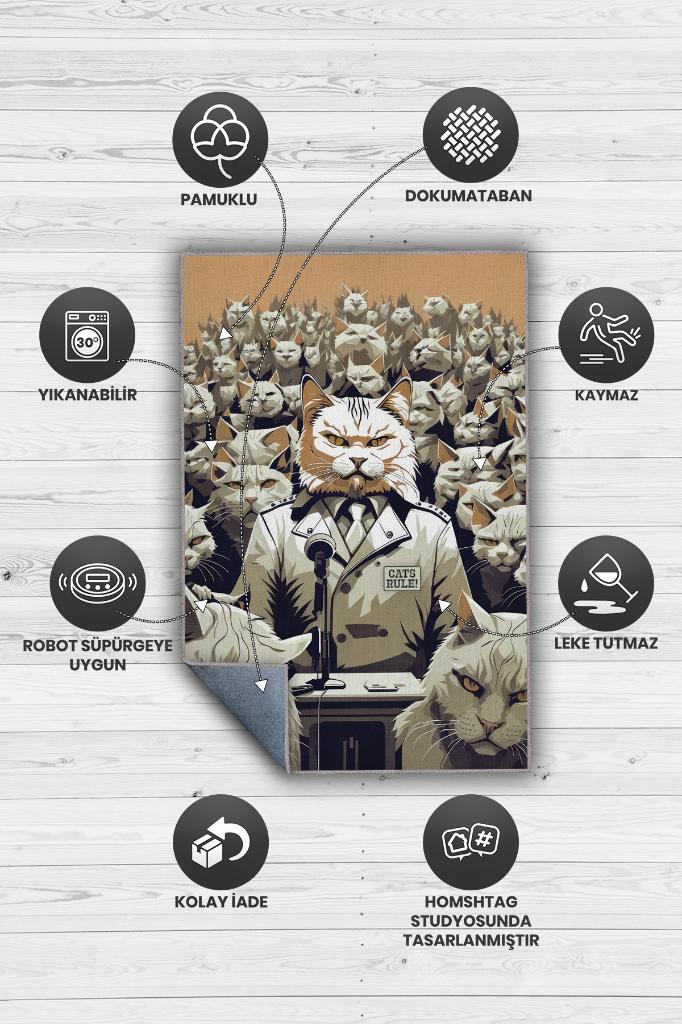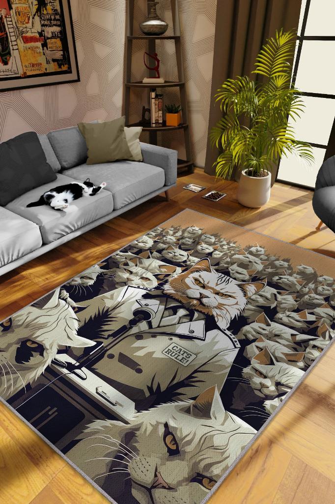 Homshtag Kediler Hükmeder Nude Renkli Kedi Figürlü Halı Özel Tasarım Kedi Sever Genç Odası Halısı