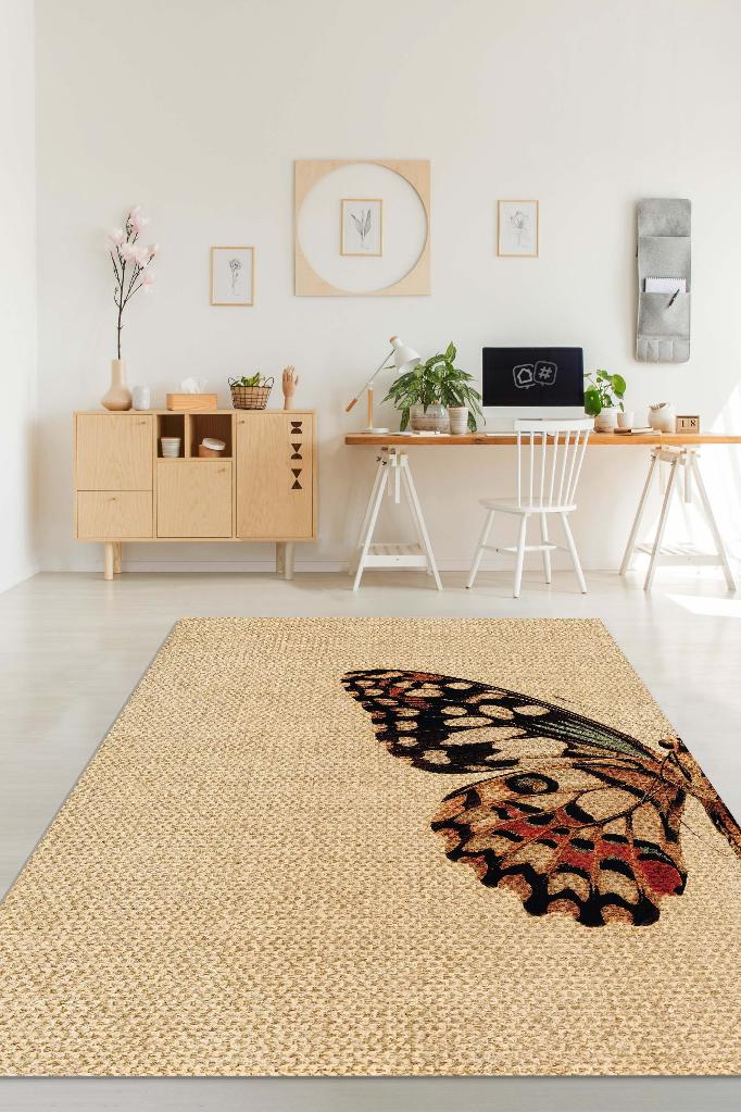 Homshtag Kelebek Kanadı Dokuma Tabanlı Bej Renkli Sade Halı Hayvan Baskı Düz Renkli Mutfak Halısı