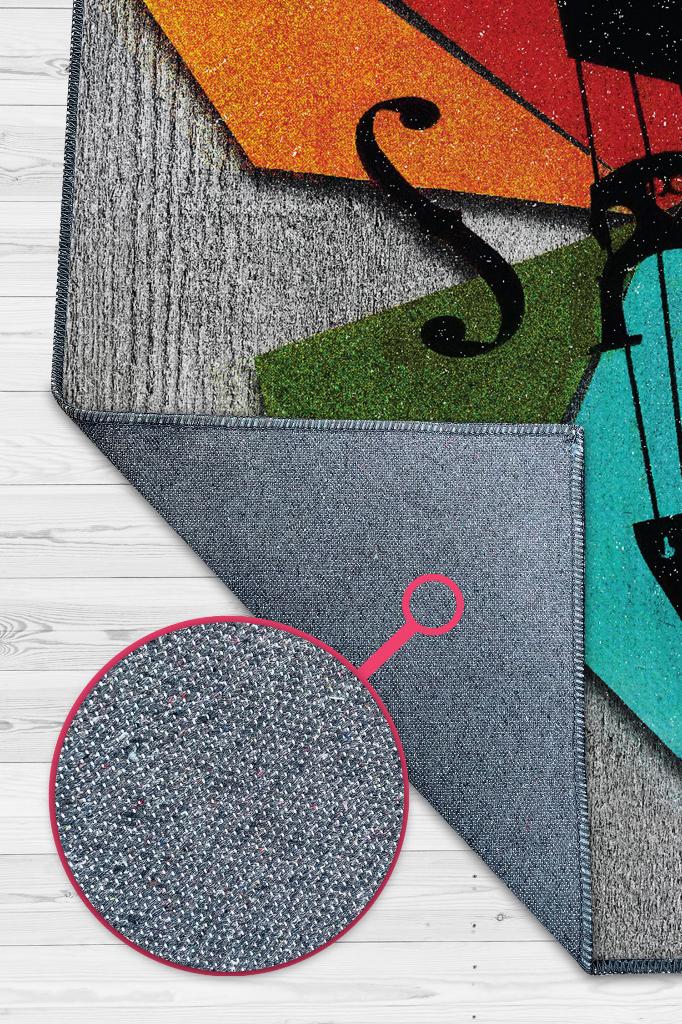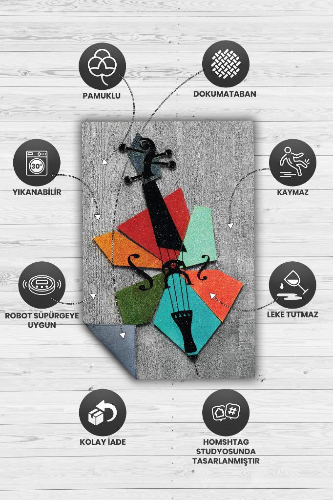 Homshtag Keman Art Müzik Halısı Modern Müzik Halısı Keman Figürlü Renkli Modern Halı