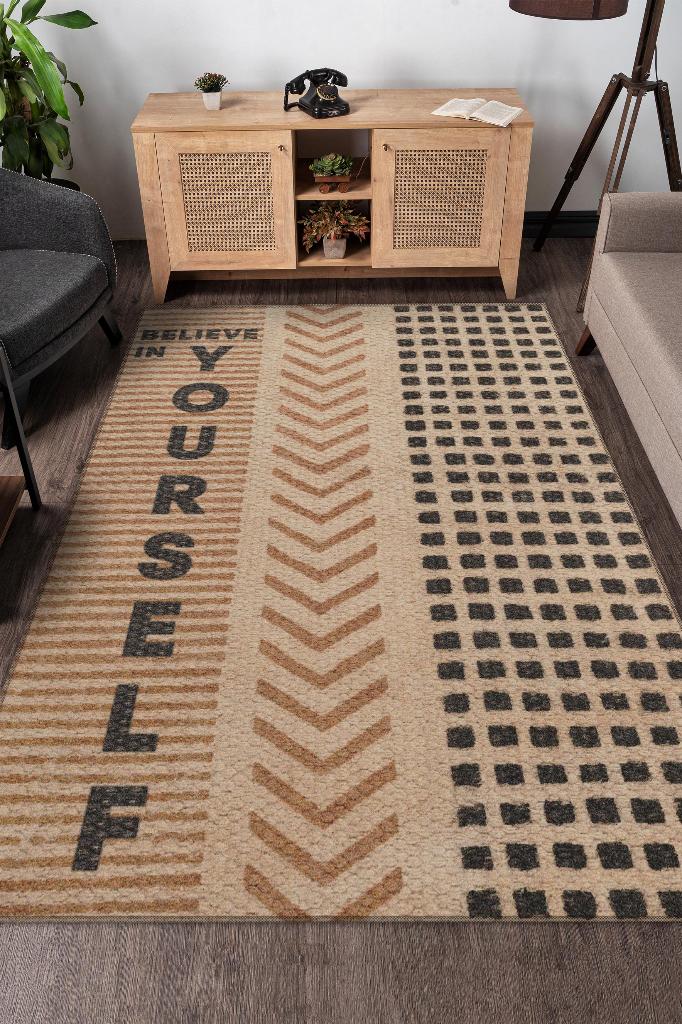 Homshtag Kendine İnan Krem Bej Renkli Halı Geometrik Oturma Odası Halısı Minimal Salon Halı