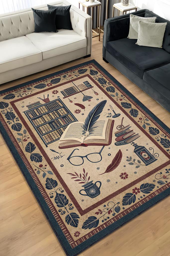 Homshtag Kitap Sever Halısı Kahverengi Kitap Sever Halısı Okuma Sever Çalışma Odası Halısı