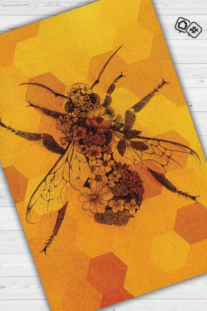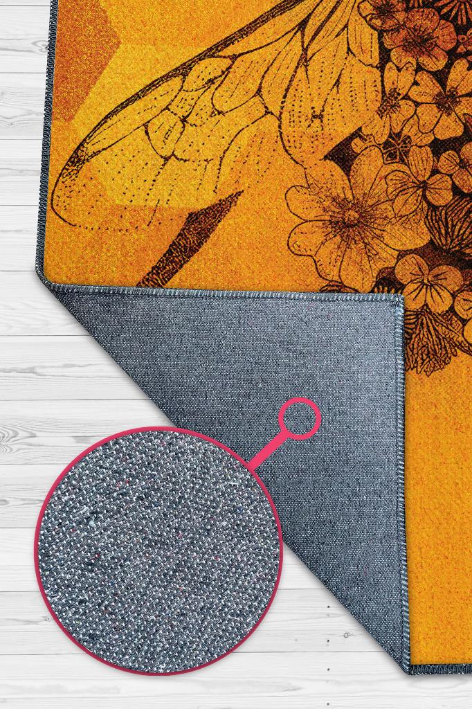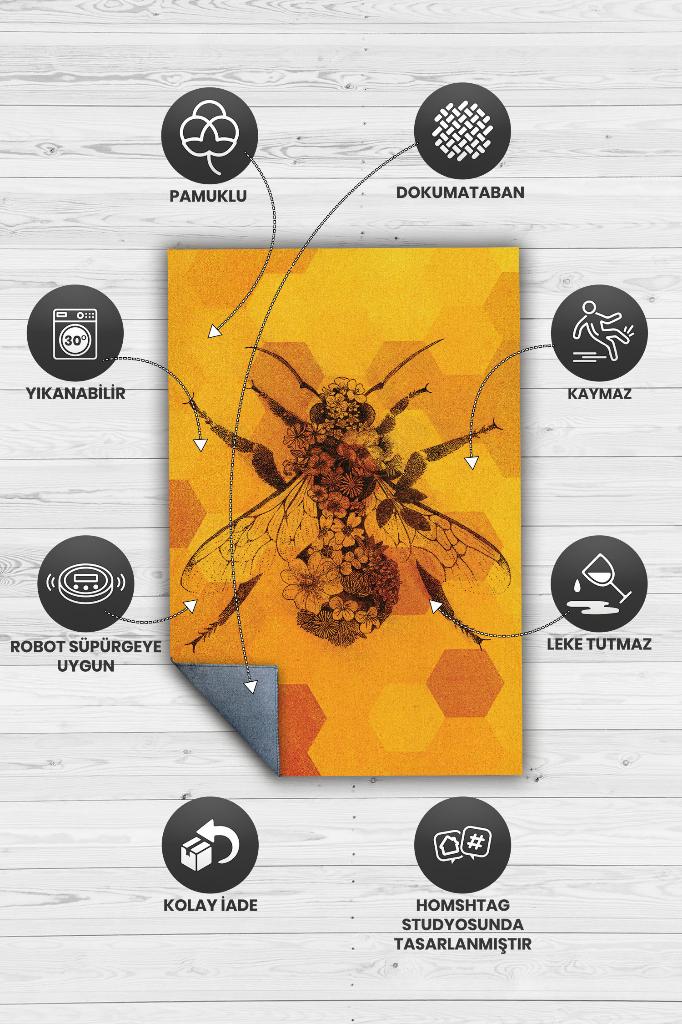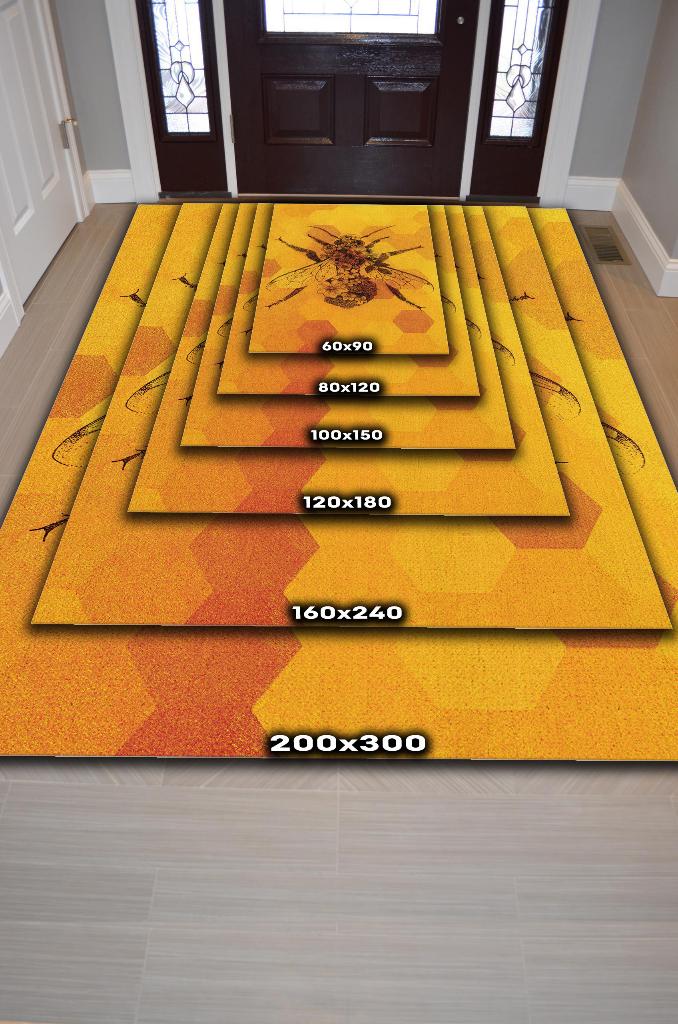 Homshtag Kraliçe Arı Dokuma Tabanlı Sarı Renkli Halı Geometrik Hayvan Baskılı Renkli Mutfak Halısı