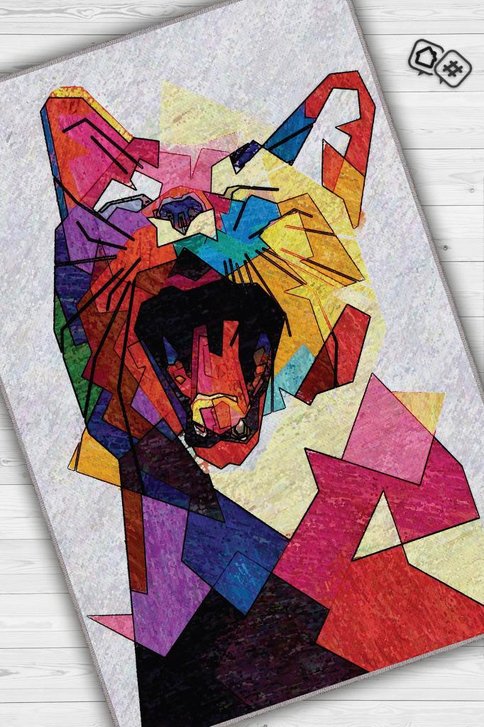 Homshtag Kübist Kedi,Renkli Prizma Desenli Salon Halısı,Pamuklu Dokuma Tabanlı Kedi Sever Halısı