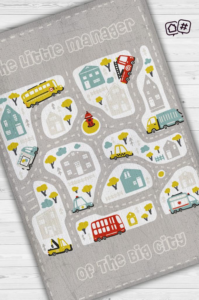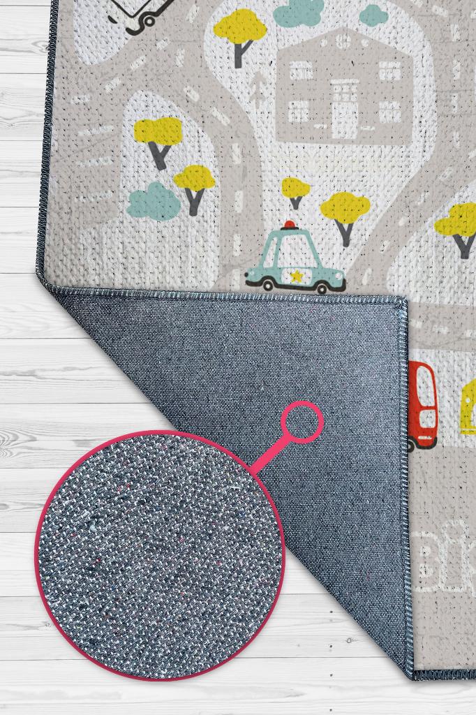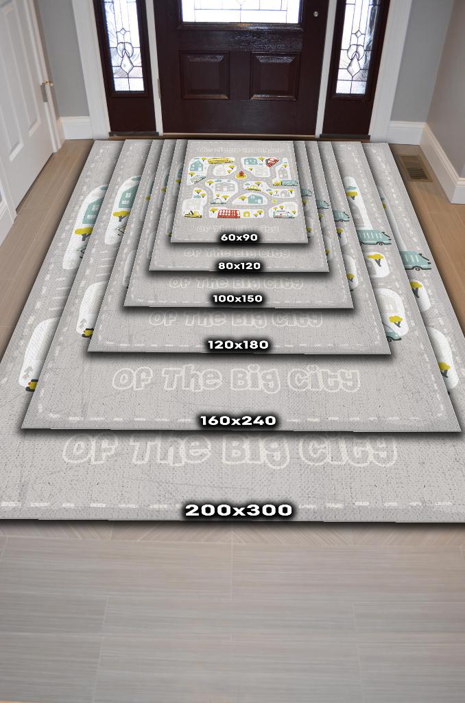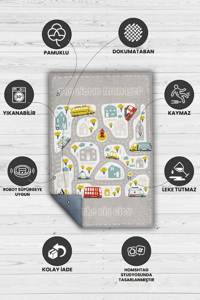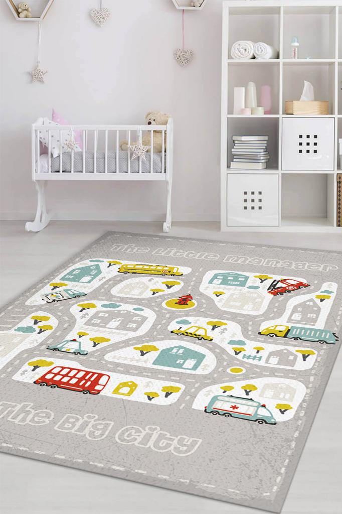 Homshtag Küçük Müdür Yol Temalı Gri Renkli Halı Yumuşak Dokulu Çocuk Odası Halısı Rustik Çocuk Halısı