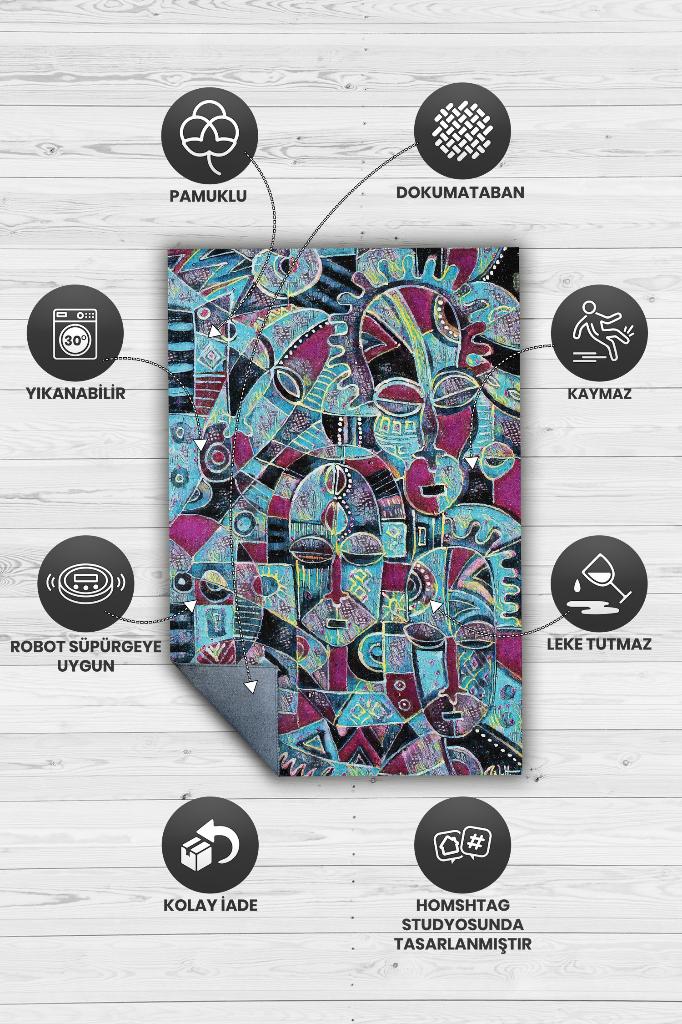 Homshtag Maskeli Kabile Geometrik Salon Halısı Etnik Desenli Halı Yeşil Renkli Oturma Odası Halısı
