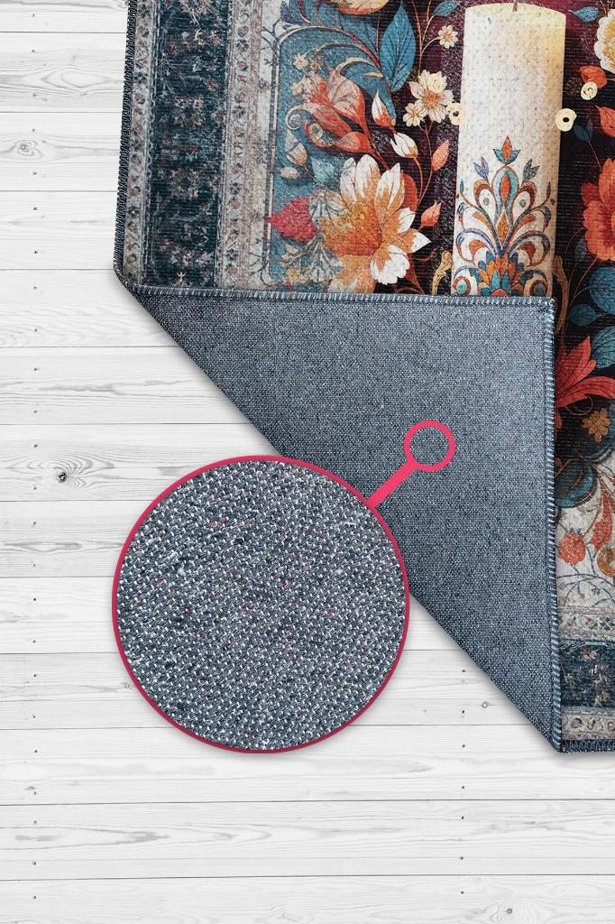 Homshtag Mum Temalı Halı Mavi Gri Meditasyon Halısı Çiçekli Vintage Halı Spiritüel Temalı Halısı