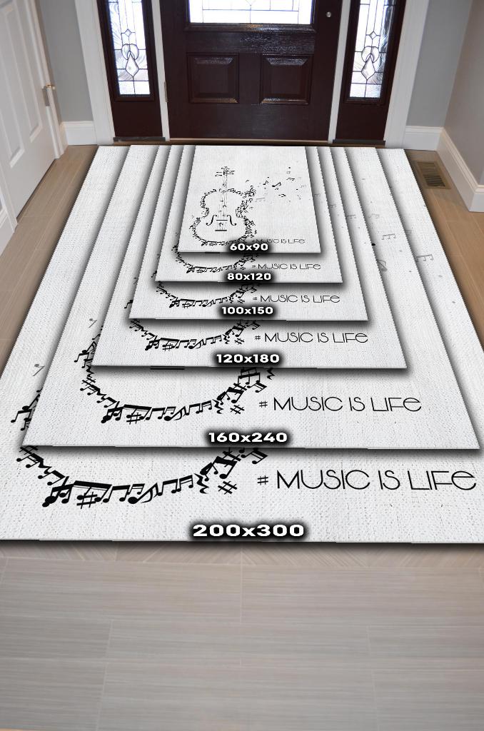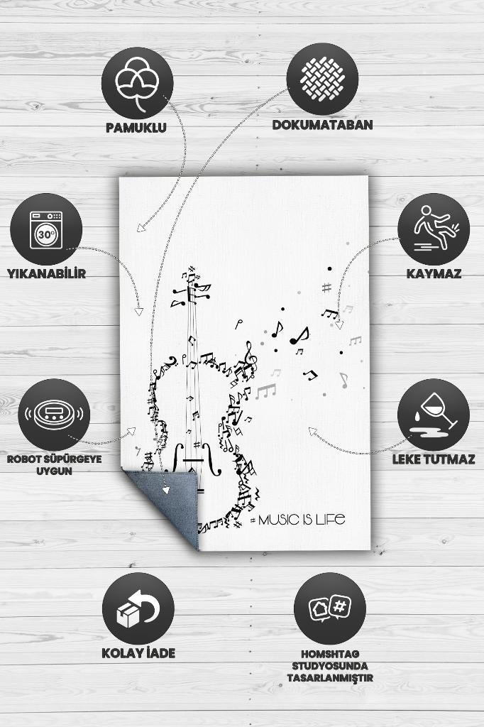 Homshtag Müzik Hayattır Art Müzik Halısı Beyaz Renkli Müzik Halısı Gitar Figürlü Beyaz Modern Halı