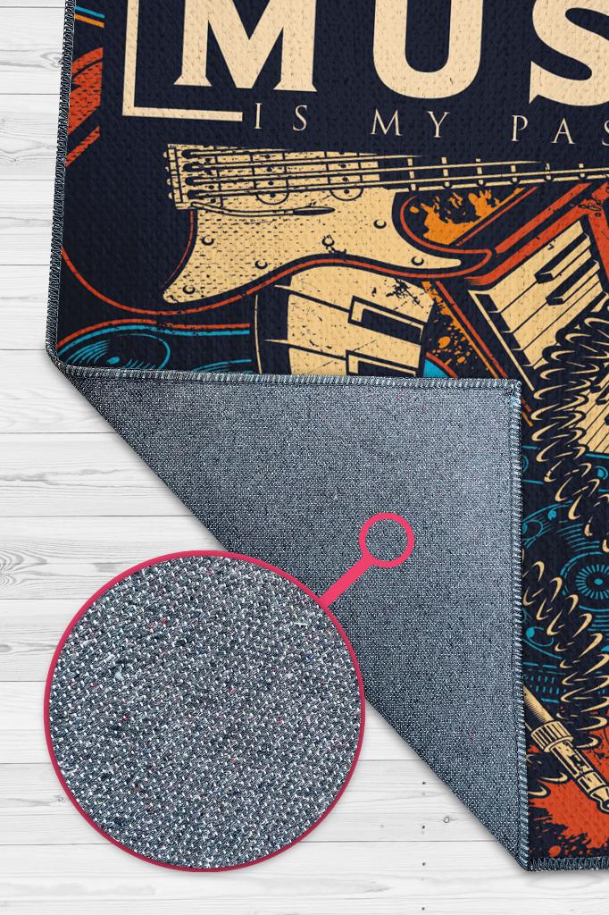 Homshtag Müzik Tutkum Art Müzik Halısı Rock Müzik Halısı Elektro Gitar Figürlü Renkli Modern Halı